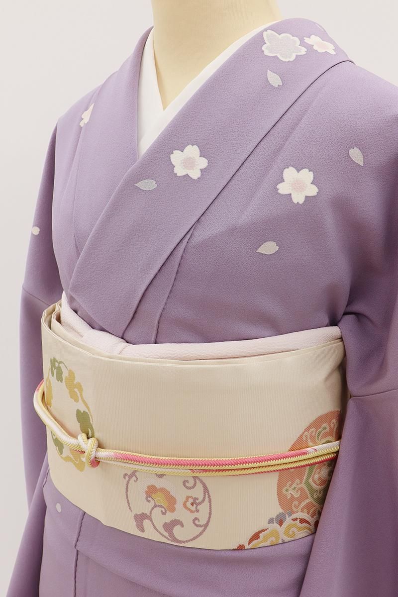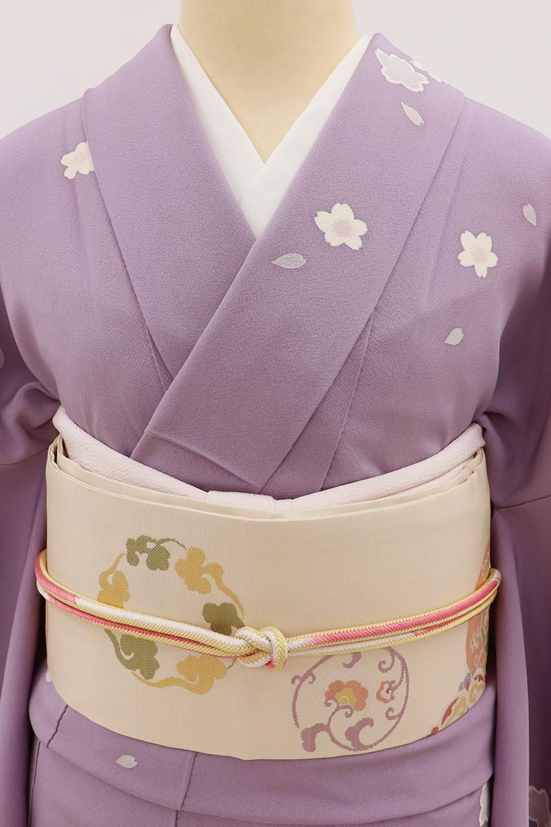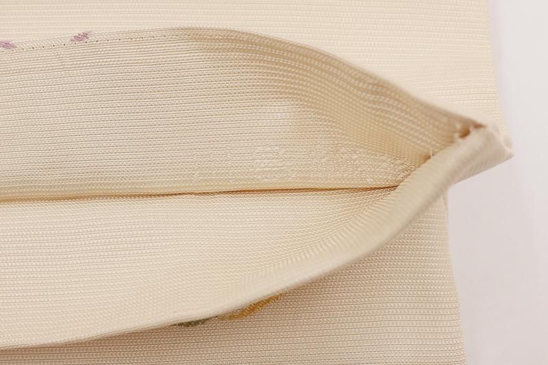 こちらは西陣を代表する老舗機屋・川島織物製のお品、しなやかな締め心地や美しく整うお太鼓のかたちが素材の良さや確かな技術を物語っていますね。優美な色柄ながら金糸は用いていませんので上質な無地紬や小紋、色無地など様々なお着物に合わせてお楽しみいただけることと思います。この機会にいかがでしょうか。