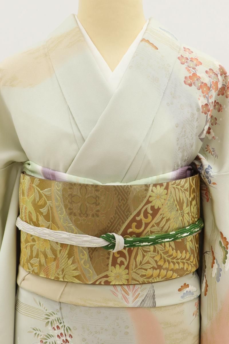 たっぷりの金糸遣いで表現された格調ある古典意匠は、様々な場面で安心してお使い頂けますね。西陣を代表する老舗機屋・川島織物さんの作ですので締めやすさも格別、改まったお出かけや晴れやかなお席などの装いにいかがでしょうか。