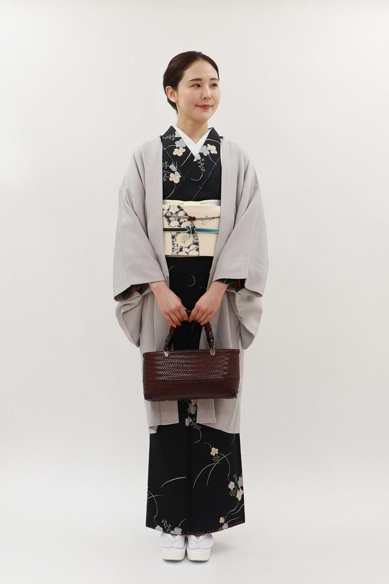 こちらは上品ですっきりとした色柄ゆきがモダンな印象のお品、シンプルでベーシックな一枚は様々なお着物に合わせやすく、現代の街並みにもすっと馴染んでくれそうですね。防寒や塵除けとして、また普段の装いのアクセントとして取り入れてみてはいかがでしょうか。