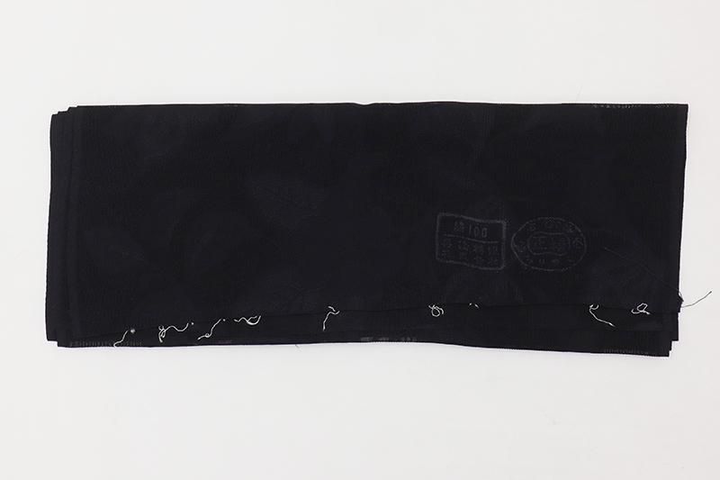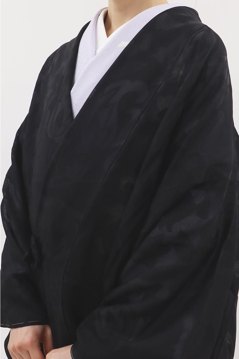 黒色の地に、おおらかな唐花の地紋の浮かぶ紋紗の道中着です。