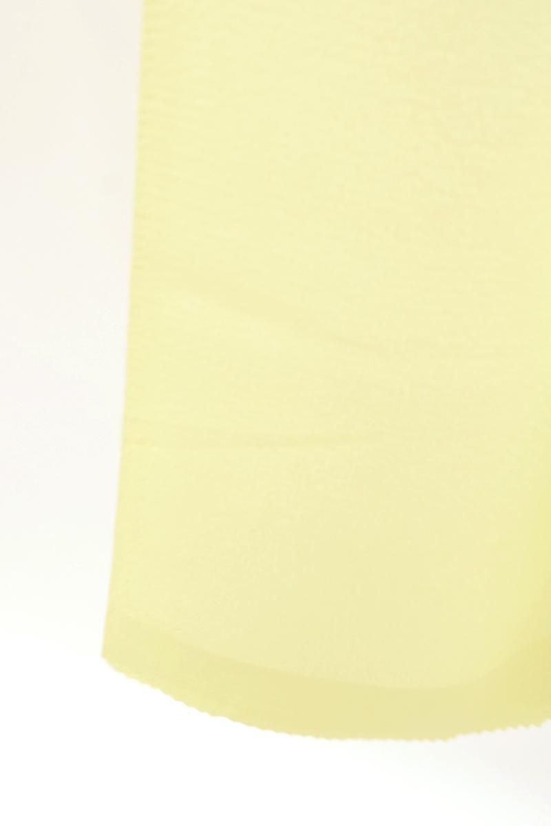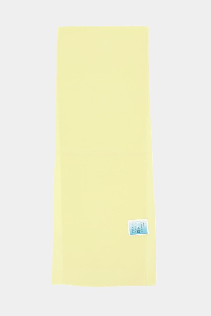 縮緬の柔らかい風合いと絽の清涼感を併せ持った絽縮緬、こちらは八丁撚糸を使い、糸から拘った上質な丹後ちりめんを用いていますので肌触りも安心ですね。お色は薄黄檗色が近いでしょうか、綺麗な明るい黄色系です。夏のお出かけに装いを爽やかに引き立てる一枚をいかがでしょうか。