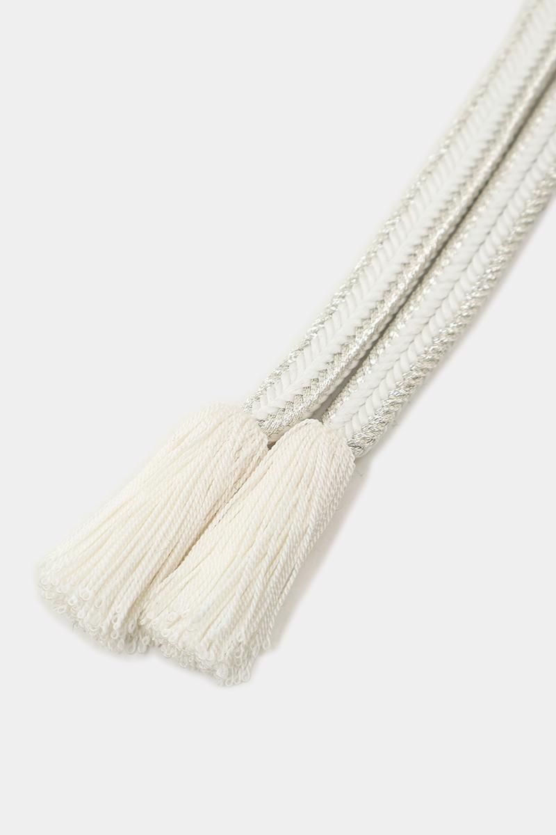 半衿や帯締めなど、きものまわりの小物の老舗として定評ある京都・衿秀製の帯締めです。こちらは白と銀の二色の糸を使用して表裏で違う組み目が出る様に組まれた冠組のお品、どちらの面を出すかによってコーディネートに変化を付けることができそうですね。シンプルなお色のすっきりとした組み合わせをお楽しみくださいませ。