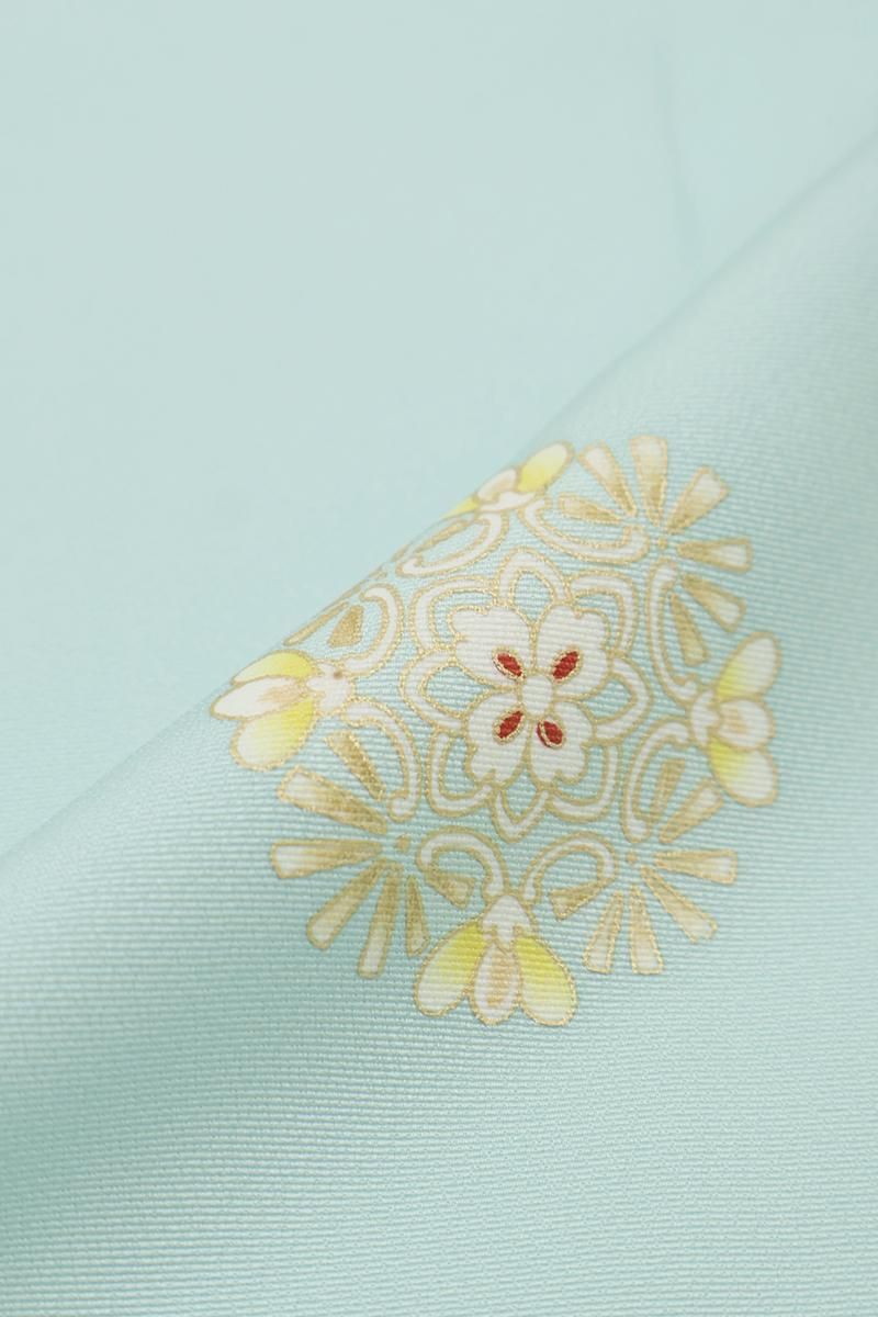 淡水色が近いでしょうか、明るい水色の地に華文を散らした単衣の小紋です。