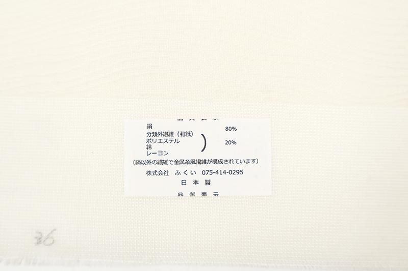 西陣証紙295 (株)ふくい製の絽の名古屋帯です。