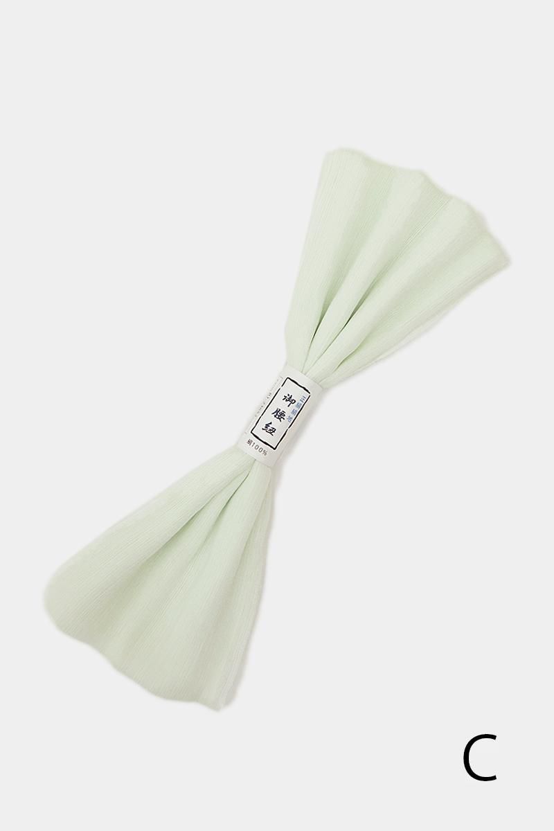 着物まわりの小物を幅広く手がける老舗として定評ある、京都・衿秀さんよりきんちの腰紐のご紹介です。こちらは絹素材の楊柳を使用したさらりと柔らかな肌触りが心地良いお品。巾広に織られているため食い込みにくく、着物をしっかり押さえてくれます。この機会に是非お試し下さいませ。