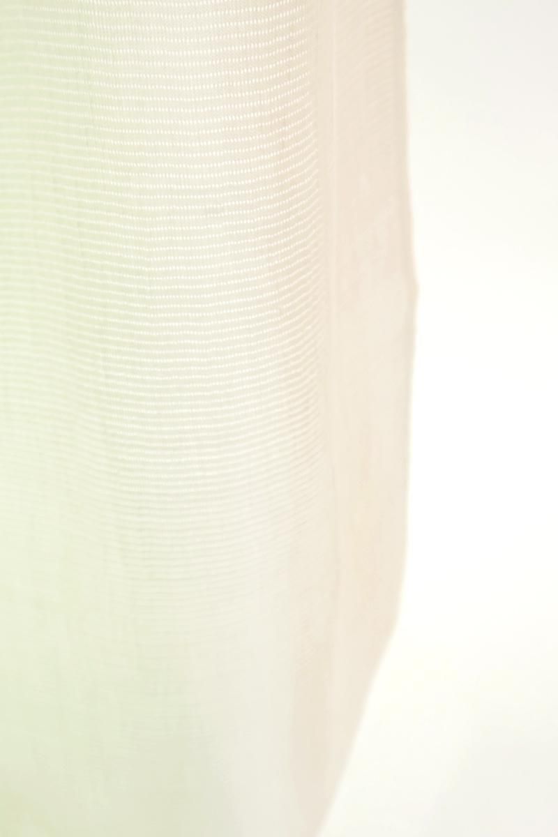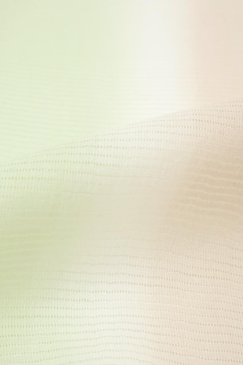 こちらは近江麻織(琵琶湖のほとり)の伝統の技で織りあげたお品、上質な麻ならではの涼やかな素材感が盛夏の装いを爽やかに引き立ててくれることと思います。昔懐かしい手もみの風合いはとても柔らかく、優しい肌触りも嬉しいですね。お色目はほんのり灰がかったベージュとごく淡い薄緑色、夏のお出かけにはんなりと涼やかな一枚をいかがでしょうか。