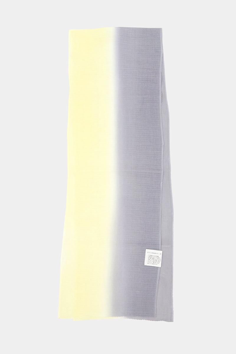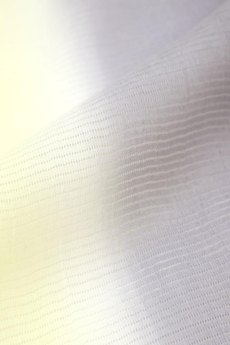 こちらは近江麻織(琵琶湖のほとり)の伝統の技で織りあげたお品、上質な麻ならではの涼やかな素材感が盛夏の装いを爽やかに引き立ててくれることと思います。昔懐かしい手もみの風合いはとても柔らかく、優しい肌触りも嬉しいですね。お色目はほんのり紫みを帯びたグレーと明るい薄黄色、夏のお出かけにはんなりと涼やかな一枚をいかがでしょうか。