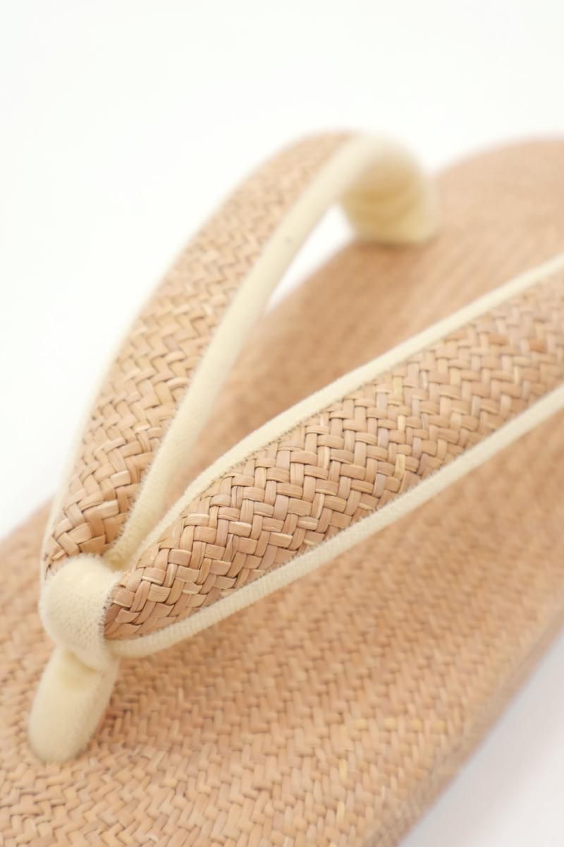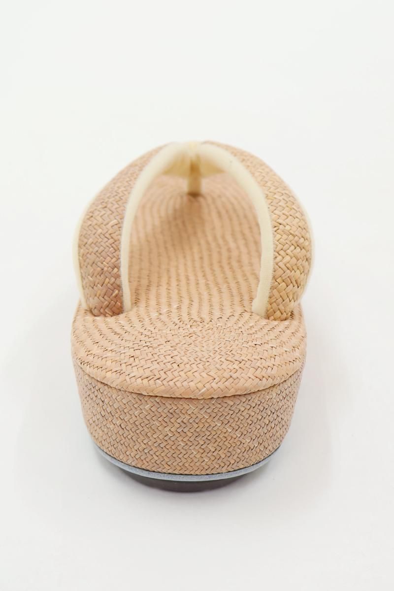 着物まわりの小物を幅広く手がける老舗として定評ある京都・衿秀さんから、パナマ素材の草履のご紹介です。こちらは巻まで丁寧にしっかりと網代に編み込まれたパナマの目地がとても美しい仕上がりのお品、柔らかな足あたりの巾広の鼻緒と、ふっくらと綿を詰めた台は足に馴染みやすく、肌あたりが優しいのが嬉しいですね。夏の上質な紬とも相性が良く、様々なお出かけに重宝いただけそうです。一枚芯のやや低めのお作りですので、遠出や長時間の外出時にも嬉しい一品、この機会にぜひお手にとってご覧下さいませ。