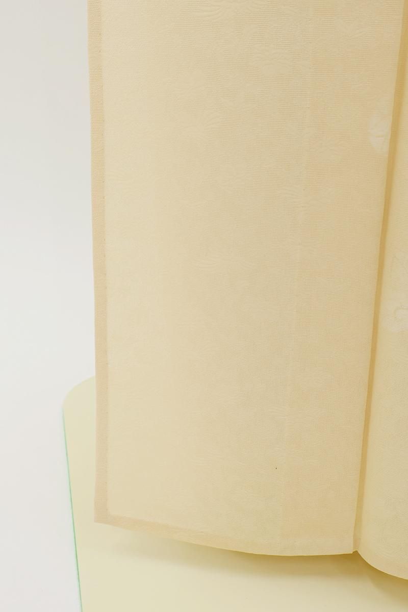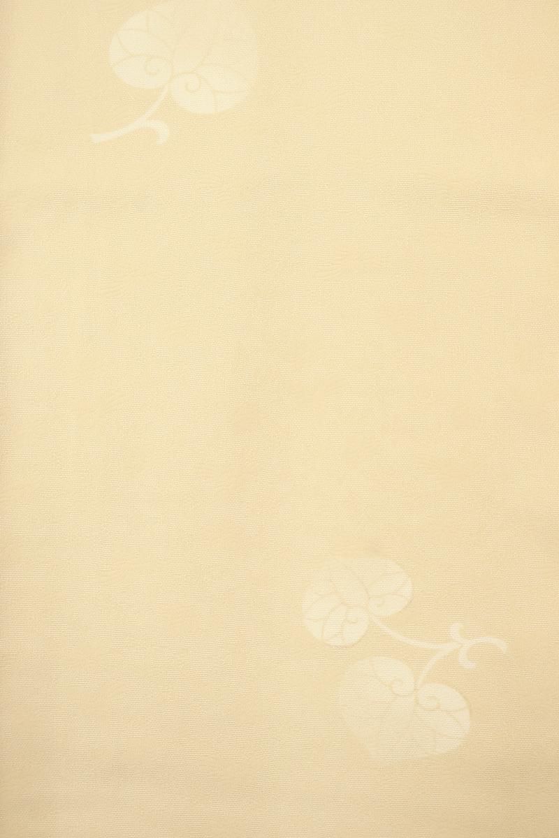 クリーム色が近いでしょうか、イエローベージュの紋紗地に、ふんわりと葵文を配した小紋です。