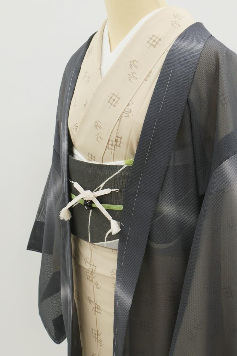 こちらは上質な洗える着物として定評のある「きもの英」製のお品、急なお天気の変化や汚れなどを気にせずに気軽に着物のおしゃれが楽しめるのが嬉しいですね。装いをきりりと引き締めまとめてくれるシンプルな一枚、塵除けやコーディネートのアクセントとしていかがでしょうか。