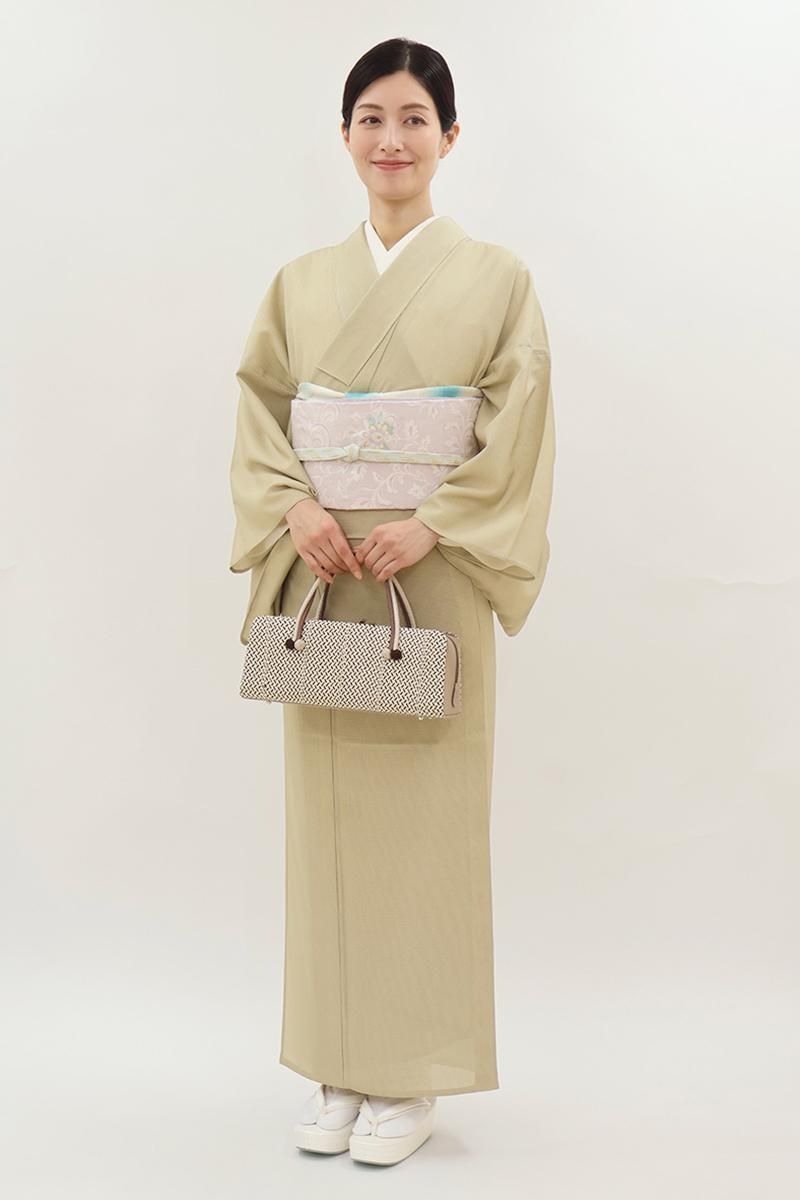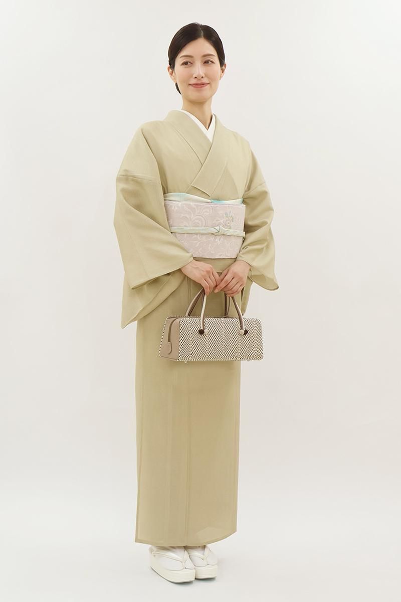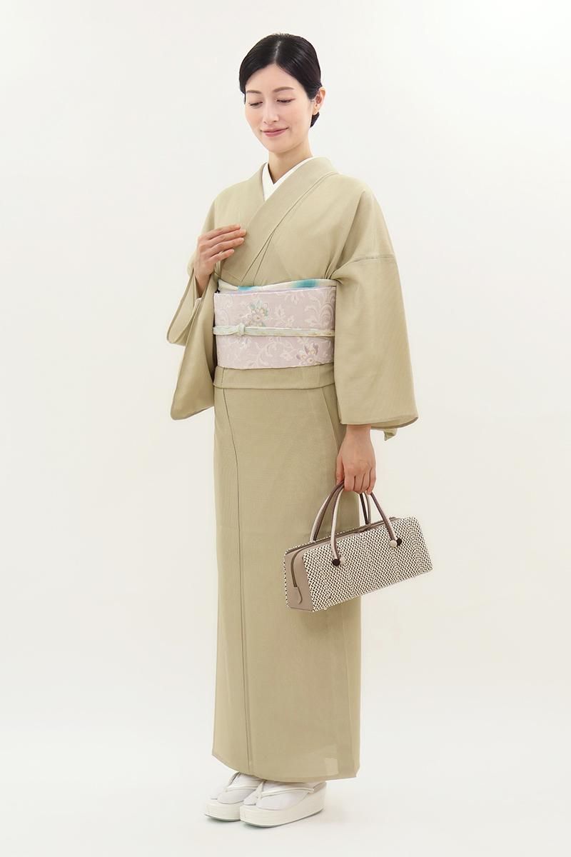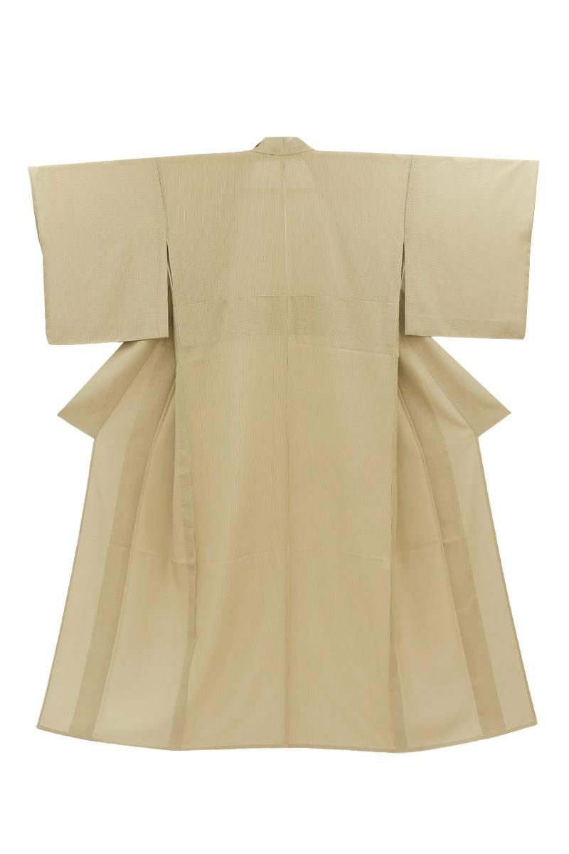 渋みのあるお色目に大人の洒落みが香る一枚、紋は入っておりませんので季節の染帯を合わせていただければ風情ある街着として、また少し格高の袋帯などを合わせていただければ軽めのお茶のお席など幅広い場面でお楽しみいただけることと思います。落ち着いた深みのある表情の万筋、この機会にいかがでしょうか。