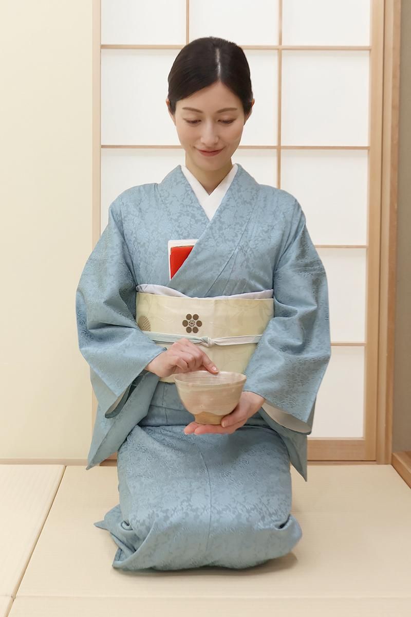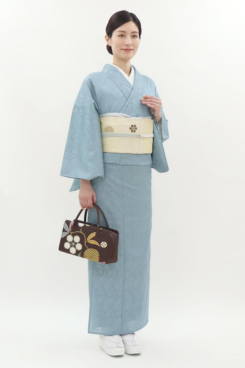 程よい甘さを含んだ清々しいお色目にほんのりと向こうを透かして浮かぶ華やかな意匠が季節ならではの風情を運ぶお品、美しいお色目の紋紗の色無地は一枚ご用意頂くと、盛夏のちょっとしたお出かけからパーティなど幅広い場面で重宝いただけます。名古屋帯から袋帯など、様々な帯合わせでエレガントな装いをお楽しみくださいませ。
