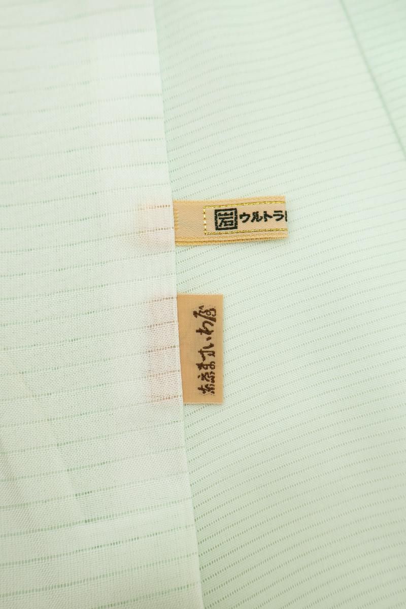 清々しい地色にふっくらとした絹糸の光沢が美しく引き立つお品、古典的な意匠を白とベージュのごく淡い彩りや金糸のみでモダンに表現していますね。ちょっとした集まりや観劇、少し改まったお席などに楚々とした気品香る装いをお楽しみいただけることと思います。この夏のお支度にいかがでしょうか。