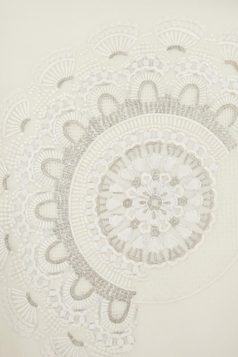 清々しい白色の地に、ごくおおらかな装飾華文を刺繍であしらった夏の袋帯です。