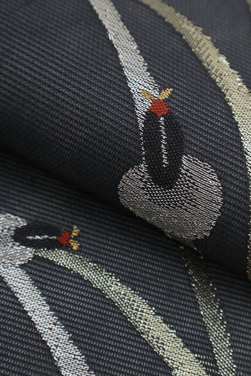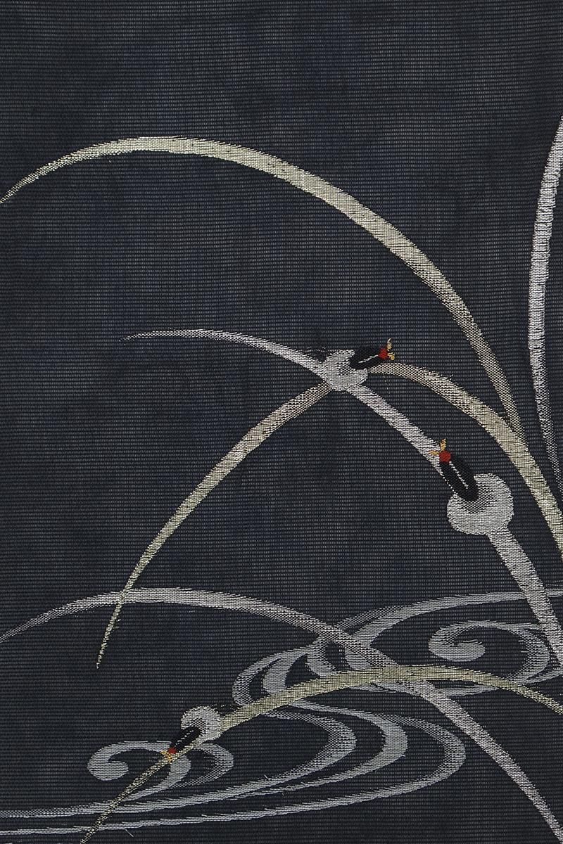黒色の地に、流水に蛍の図を織りだした絽の袋帯です。