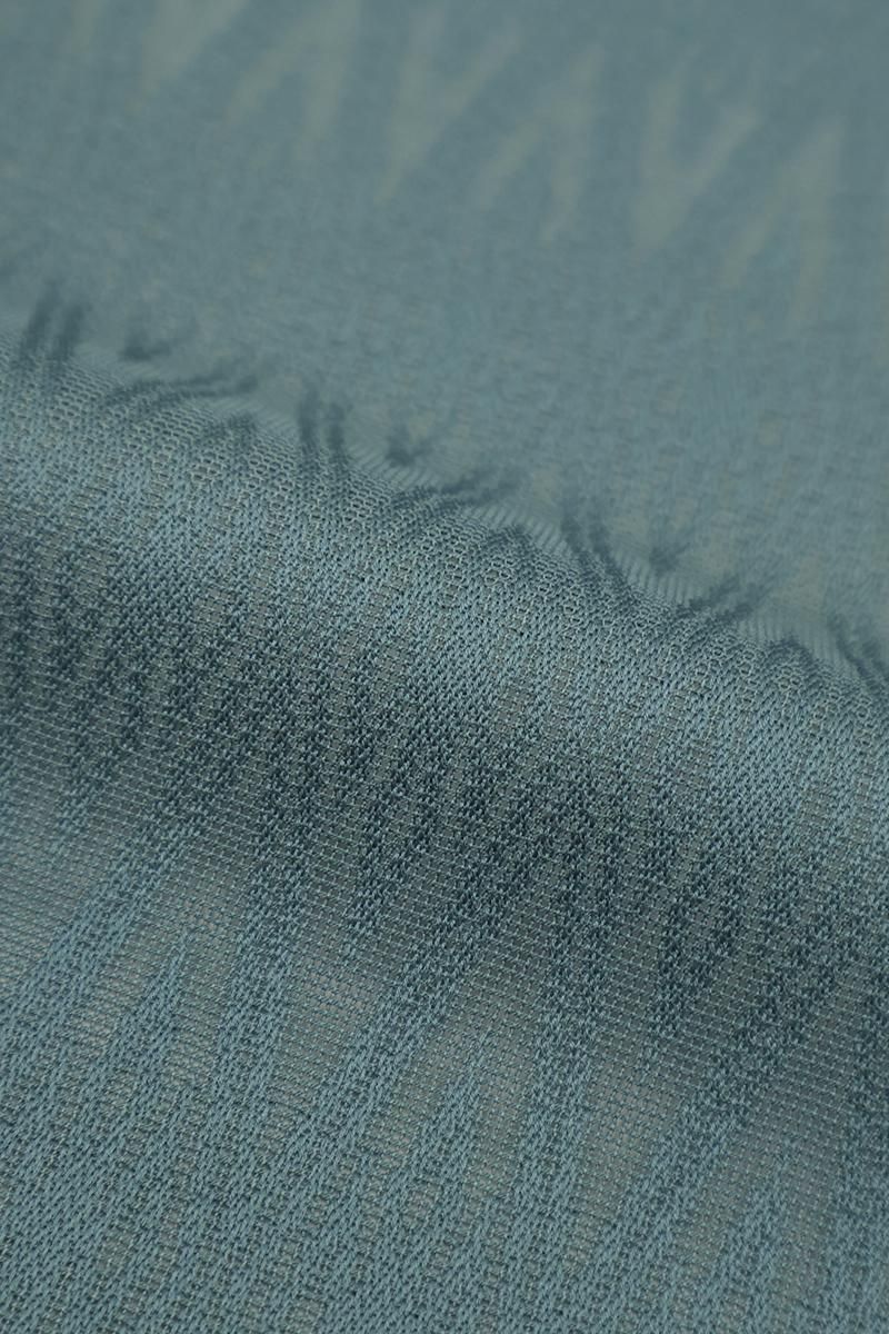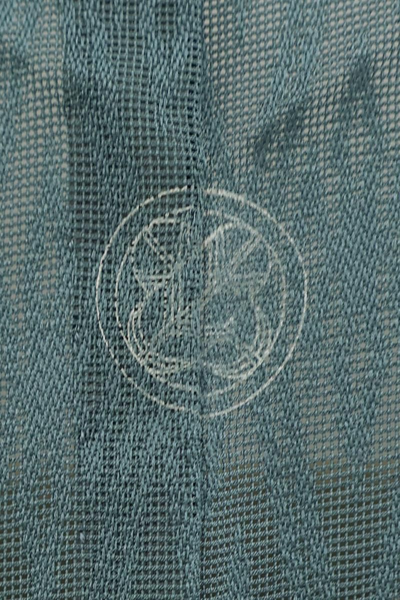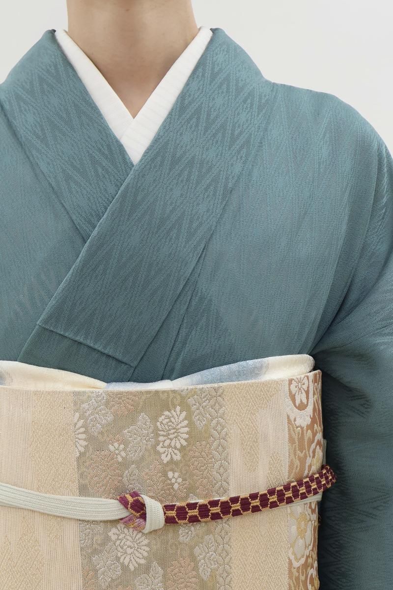やや色を薄めた中縹色が近いでしょうか、灰みの暗い青緑色の紋紗の色無地です。