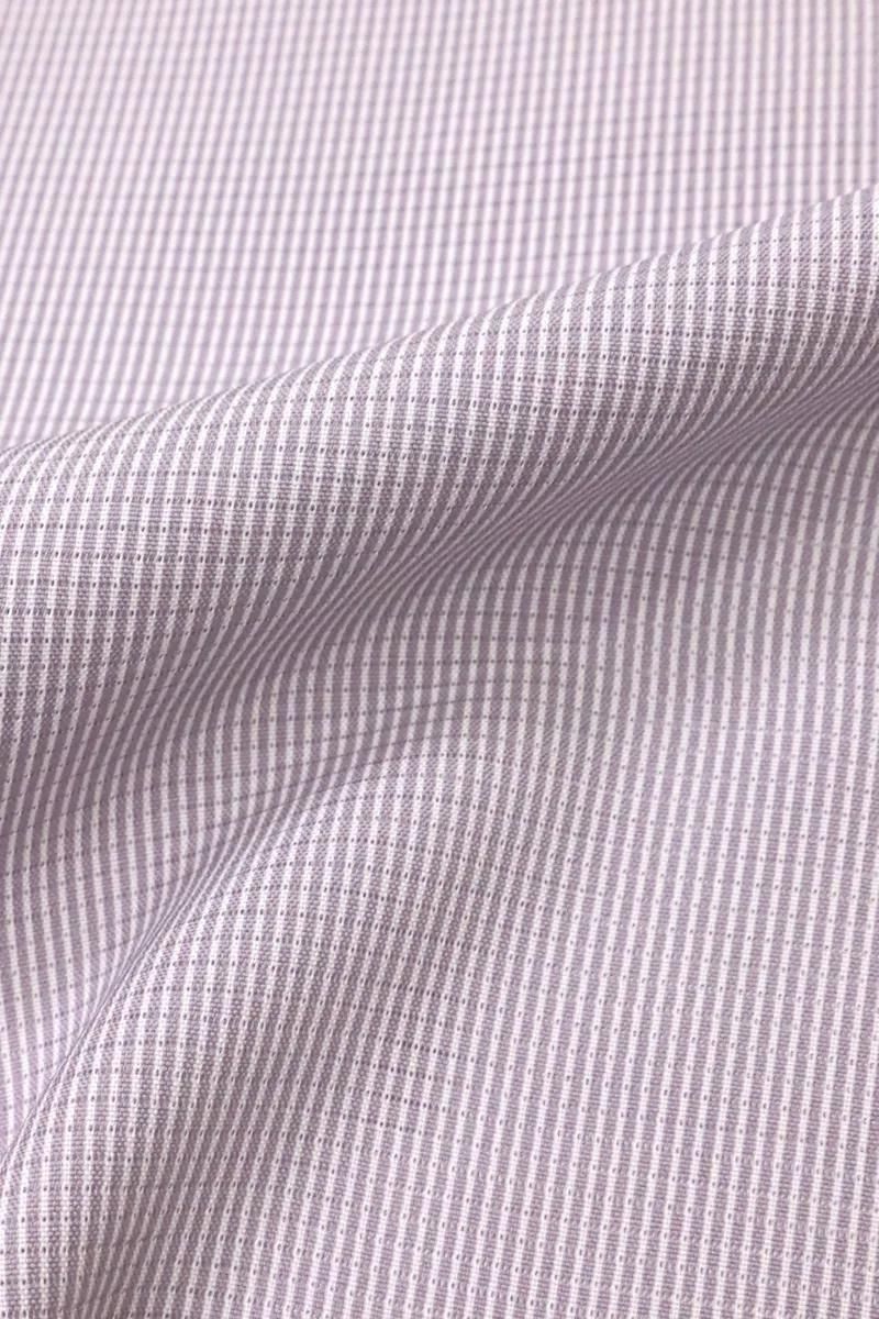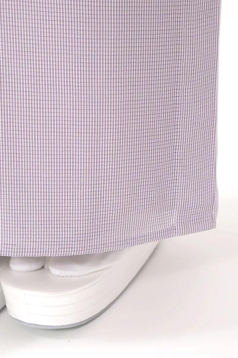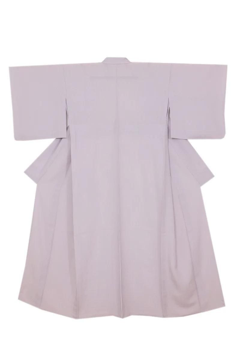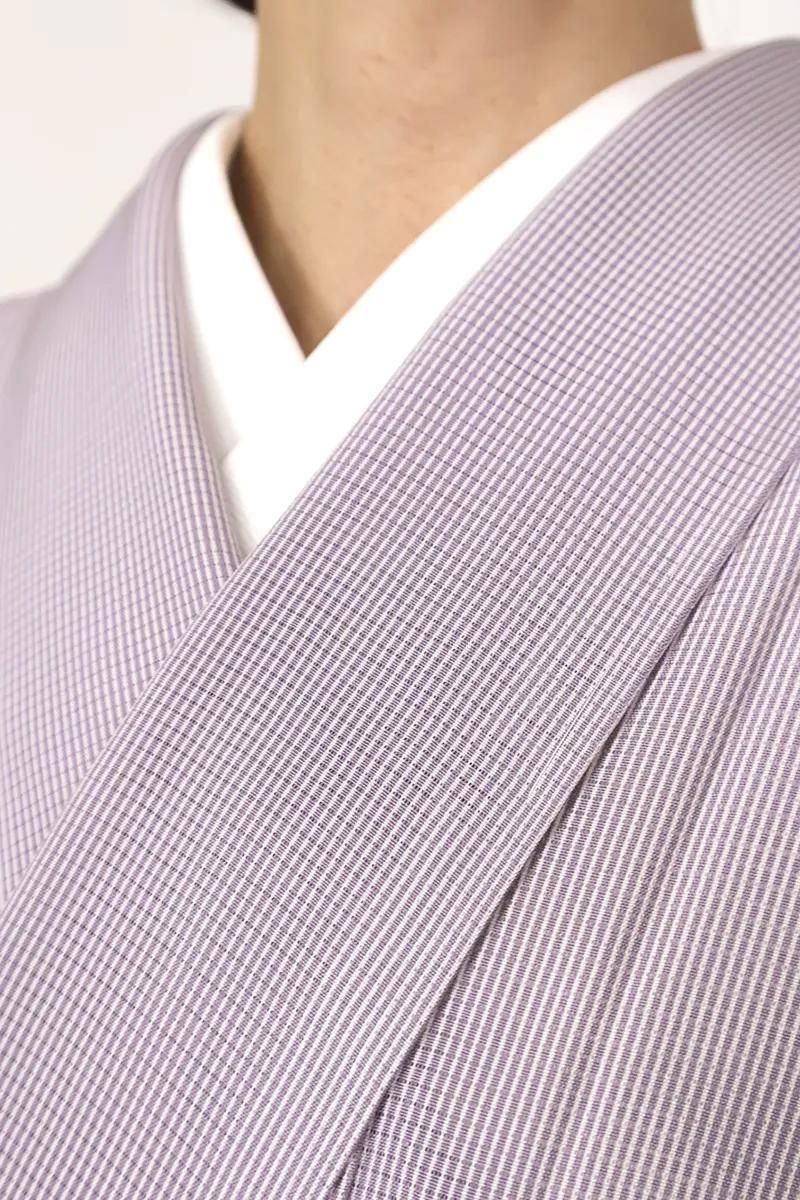 ほんのりと灰みを含んだ薄紫色の万筋を染めた絽の江戸小紋です。