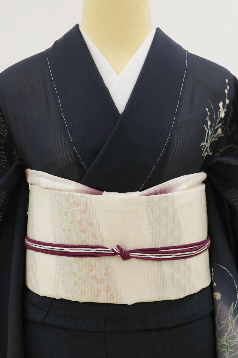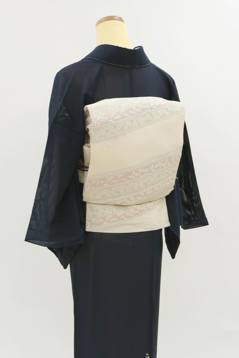 さっくりと透け感豊かな地風が涼やかな趣のお品、品良い輝きの金糸の輝きが楚々とした柄の印象を引き立てています。白系の帯は合わせる着物の色柄も幅広く、一本お持ちいただくと何かと重宝ですね。格高の小紋から色無地、付下げなどに合わせて優美な装いをお楽しみくださいませ。