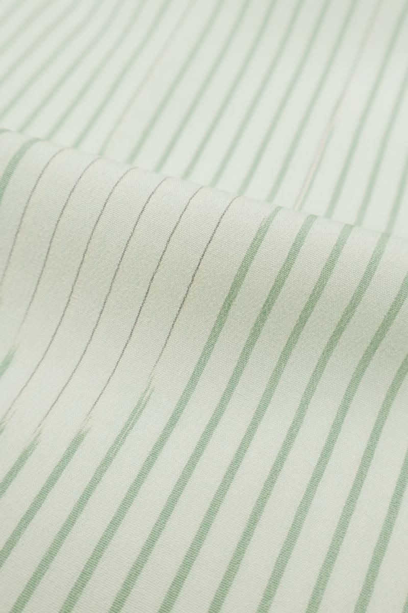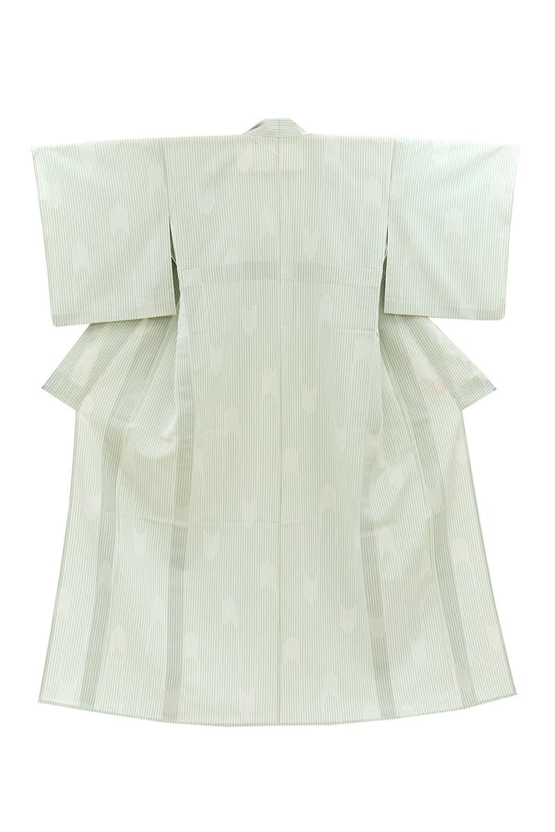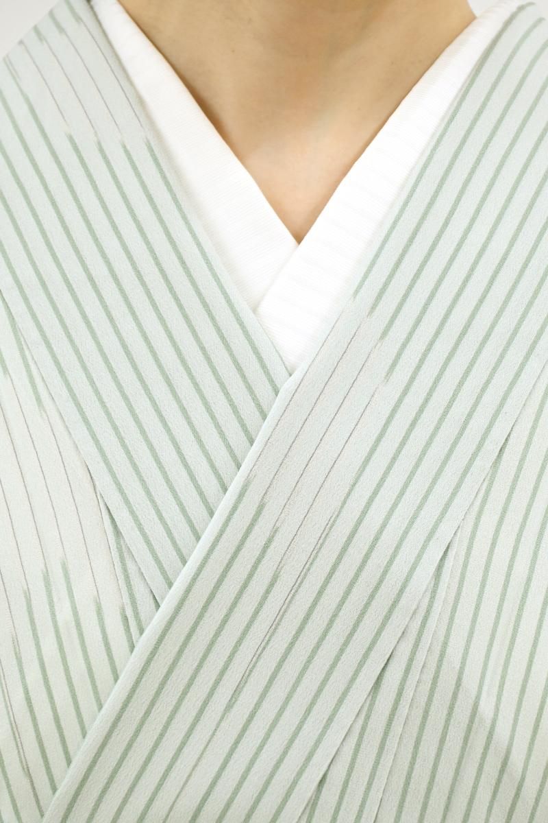 こちらはやや色を薄めた裏葉色が近いでしょうか、灰みの薄緑色系の地に縞に矢絣文を配したお品、
