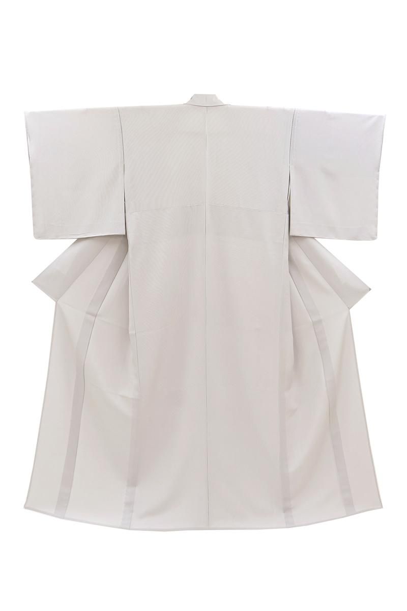 灰みの強い霞色が近いでしょうか、温かみのある薄グレーの地に万筋を染めた単衣の江戸小紋です。