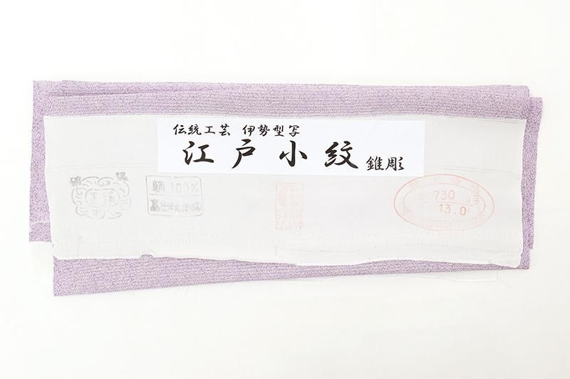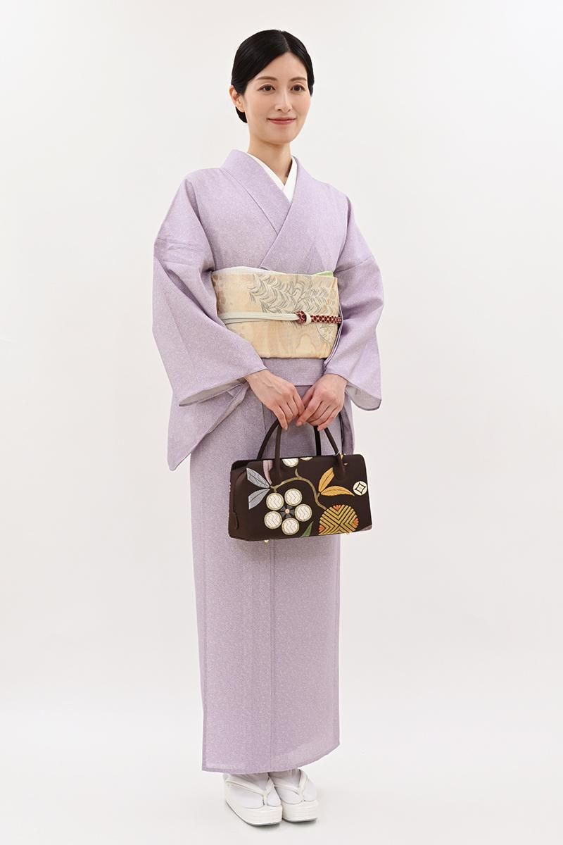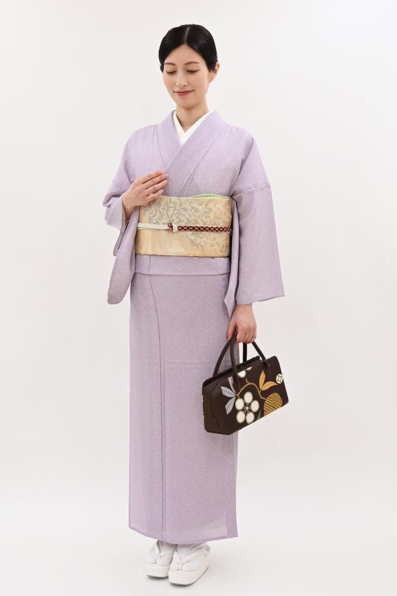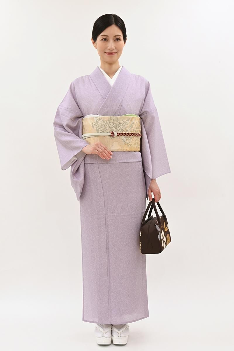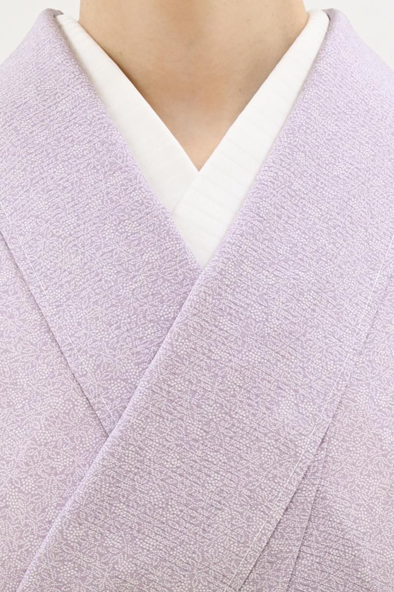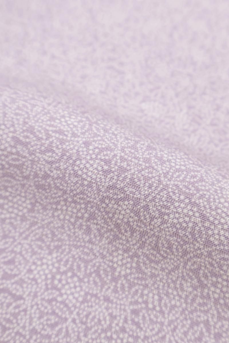 やや色を深めた薄紅藤色が近いでしょうか、やさしい薄紫色の地に細やかな南天の図を染めた絽の江戸小紋です。南天文様は「難を転ずる」に繋がることから、昔から縁起の良い吉祥柄として愛されていますね。災いを避け、福を呼び込む小さな南天に願いを込めて、長くお召し頂ければと思います。紋は入っておりませんので気軽な街着から格高の帯を合わせてお呼ばれのお席になど、幅広い場面でお楽しみ頂けることと思います。この機会にいかがでしょうか。
