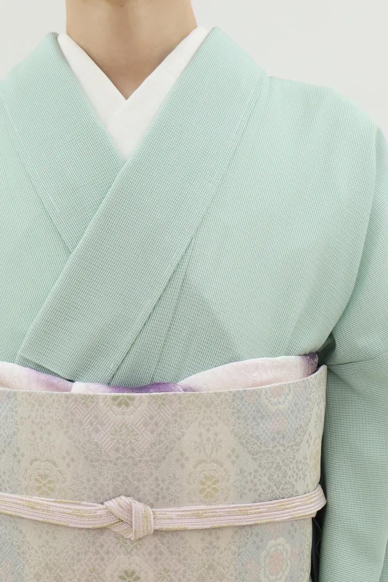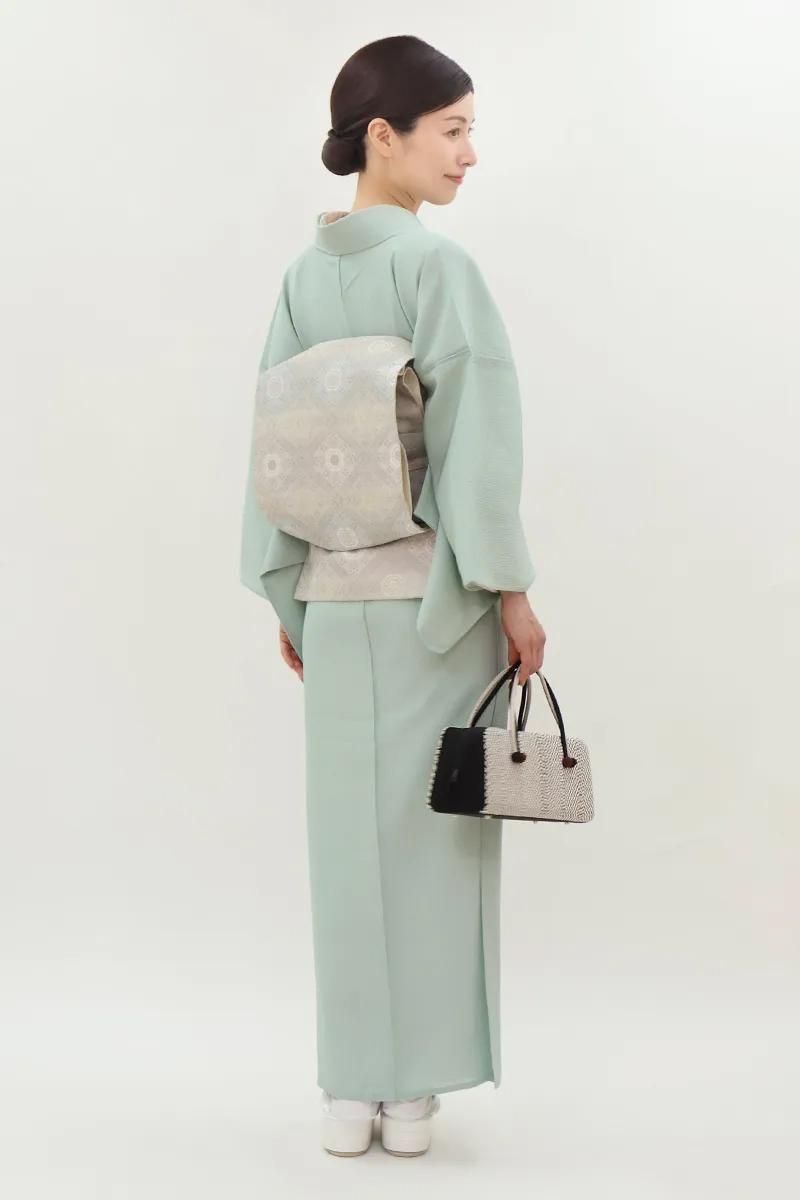 合わせる帯次第で様々なお席に対応できる細やかな柄行きの江戸小紋は一枚ご用意いただくと何かと重宝なもの、爽やかなお色目は帯の背景としても活躍してくれそうですね。季節の染め帯を合わせて気軽な街着に、また少し格高の袋帯などを合わせればお茶の席など、幅広い場面でお楽しみいただけることと思います。この機会にいかがでしょうか。