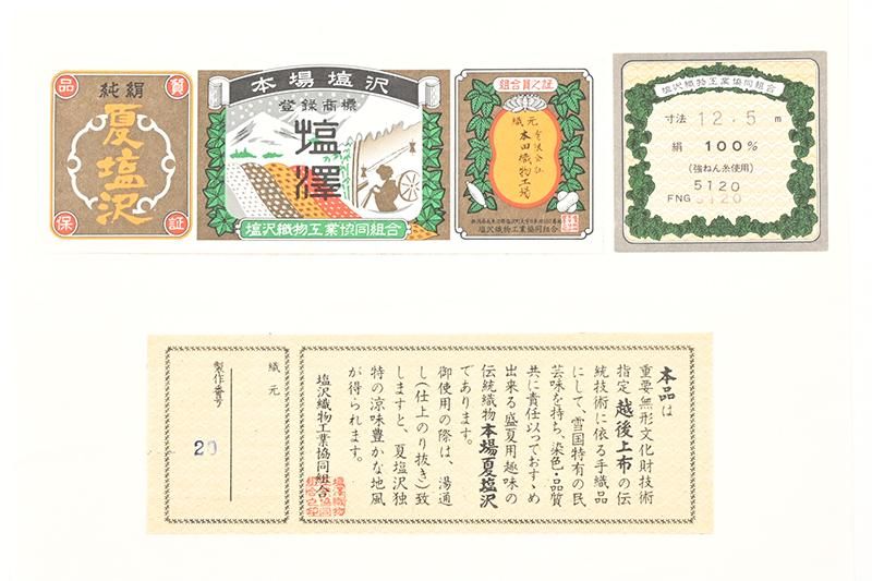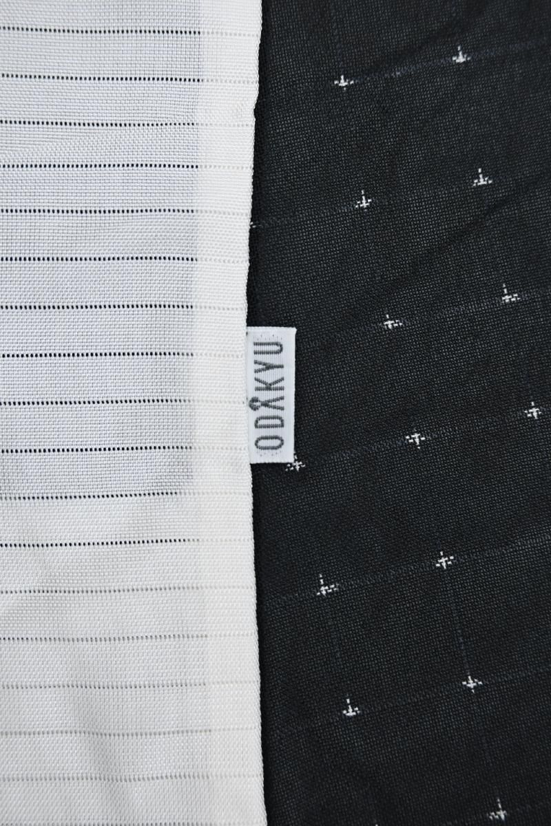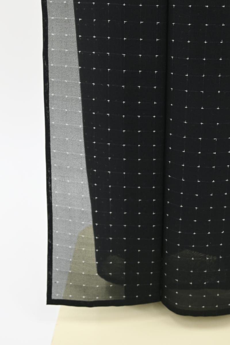 黒色の地に格子に小さな絣文を織りだした夏塩沢です。