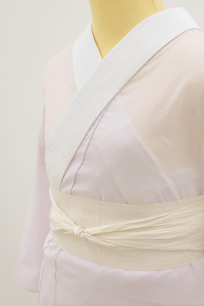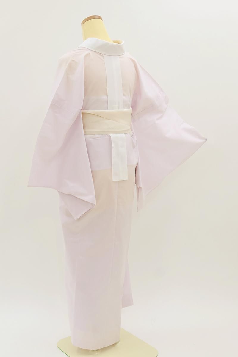 こちらは色を薄めたライラック色が近いでしょうか、ピンクみの淡い薄紫色のお品、シンプルな無地ですので合わせる着物を選ばず、単衣時期から夏にかけて快適な着心地をお楽しみ頂けることと思います。ご家庭で気軽にお手入れもして頂けますので、洗い替えの数が必要なこれからの季節にもぴったりですね。ぜひこの機会にいかがでしょうか。