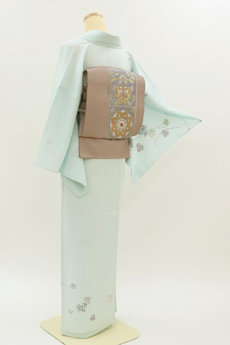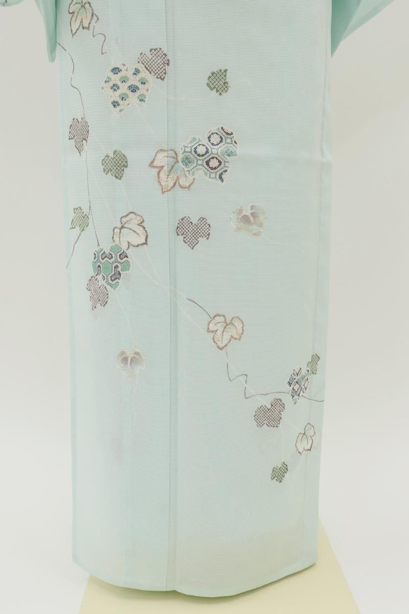 やや色を薄めた淡水色が近いでしょうか、ごく淡い水色の地に蔦の図を配した絽の付下げです。