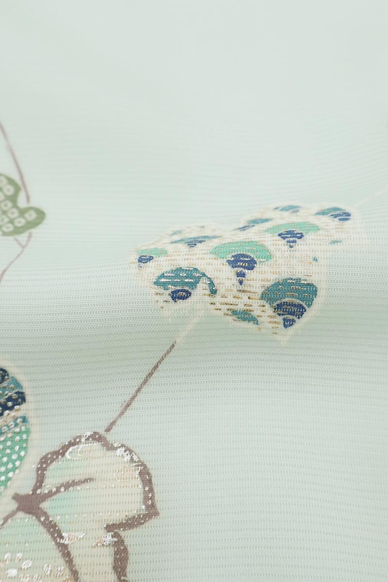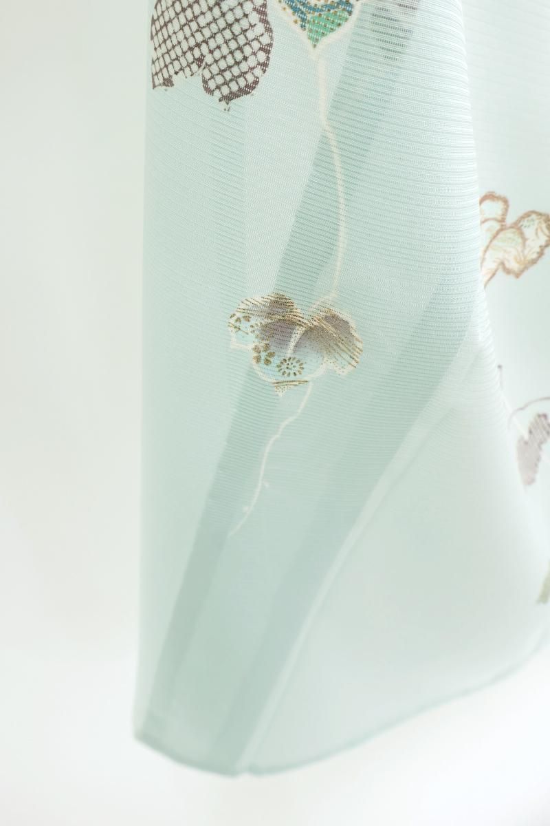透け感のあるさらりとした地風に、モダンにアレンジされたモチーフが爽やかな風を運ぶお品、金銀彩のきらめきがさりげない気品を添え、夏衣ならではの風情ある装いをお楽しみ頂けることと思います。様々な帯合わせで、改まったお出かけやパーティなど華やかなお席の装いにいかがでしょうか。