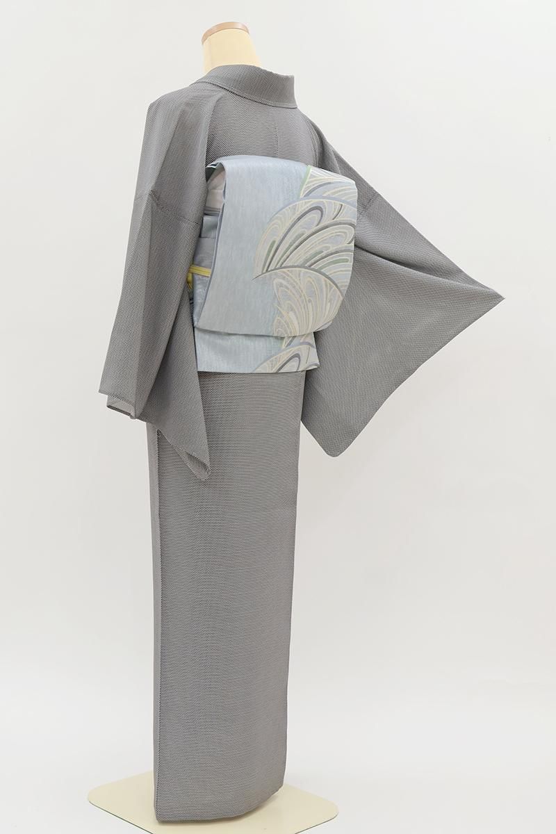 小紋三役のひとつとして人気のある行儀は、江戸小紋の中でも格が高いものです。ちょっとしたお出かけからお茶の席など改まった場面まで、合わせる帯次第で幅広くお使いいただけますね。シックなお色目がきりりとした雰囲気のお品、重宝にお召しいただけける品格ある江戸小紋を一枚、この機会にいかがでしょうか。