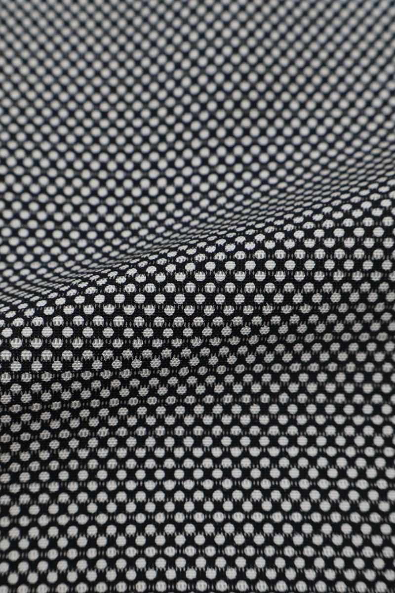 黒色の地に行儀を配した絽の江戸小紋です。