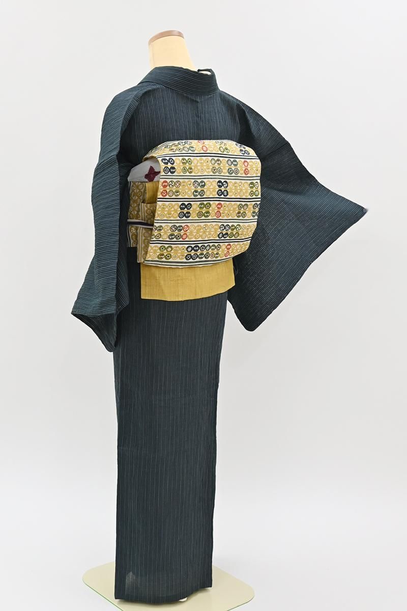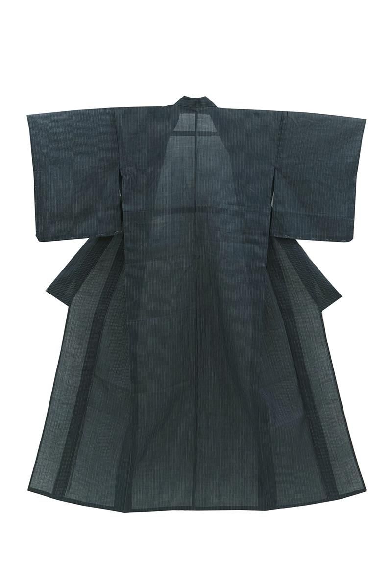 暑い夏にも安心なお手入れのしやすさ、そして細やかなしぼから生まれるさらりと快適な着心地から、この季節手放せない小千谷縮です。こちらは濃藍色が近いでしょうか、ごく深い藍色の地に、竪縞を織りだしたお品、シンプルな色柄ですので帯合わせも様々に、重宝にお楽しみ頂けることと思います。お家でお手入れできる気軽さも夏には大切な要素。涼風が抜けてゆくような素敵なカジュアルをお楽しみ下さいませ。