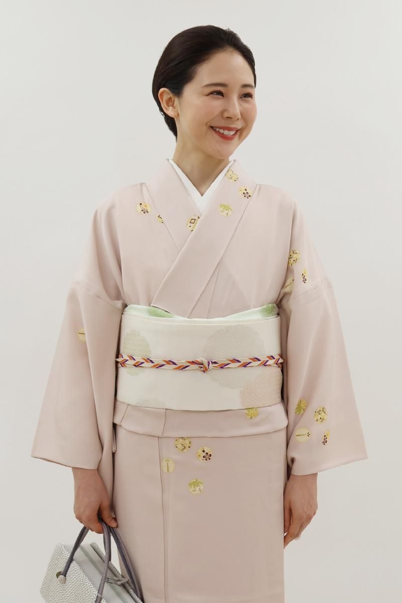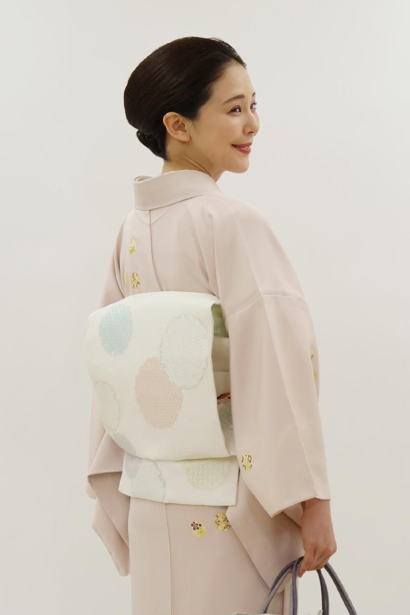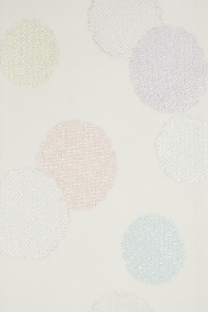 穏やかな彩りや銀糸を用いて表した愛らしさのある古典的なモチーフが品良い華やぎを添えるお品、装いを女性らしくはんなりと引き立ててくれることと思います。こちらは軽い透け感がありますので単衣時期から夏を通して長い期間、気候に合わせてお楽しみいただけることと思います。格高の小紋から色無地、付下げなどに合わせていかがでしょうか。