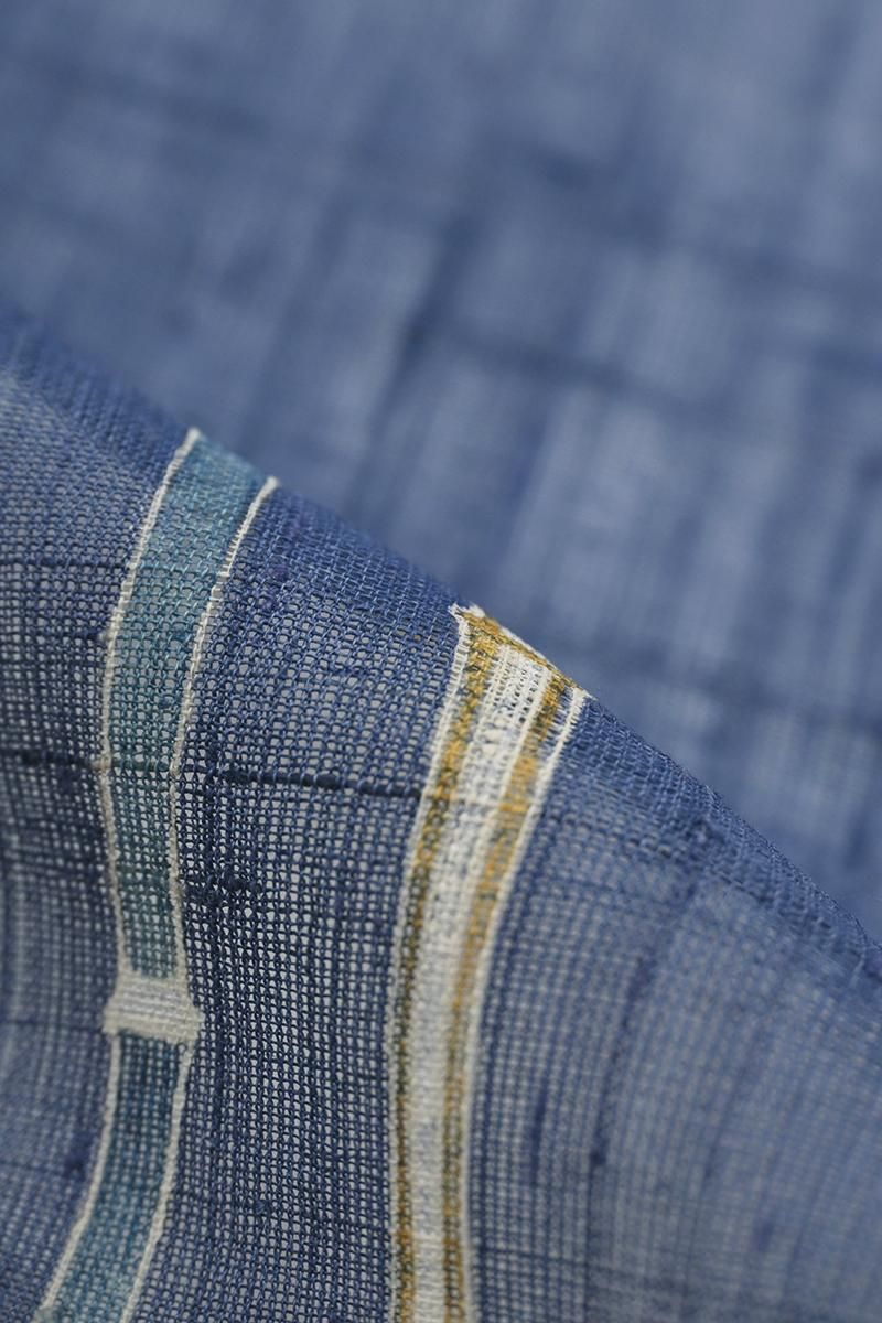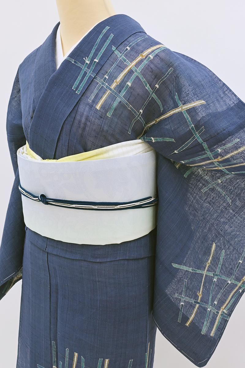 さっくりと張りと透け感のある夏紬地に大胆な構図で表現された海辺の意匠が、小袖を思わせる風情豊かな景色を創り上げるお品。所々に節の覗く野趣ある地風に洒落みが香りますね。ちょっとした集まりや観劇などに大人の風格漂う洒脱な装いをお楽しみくださいませ。