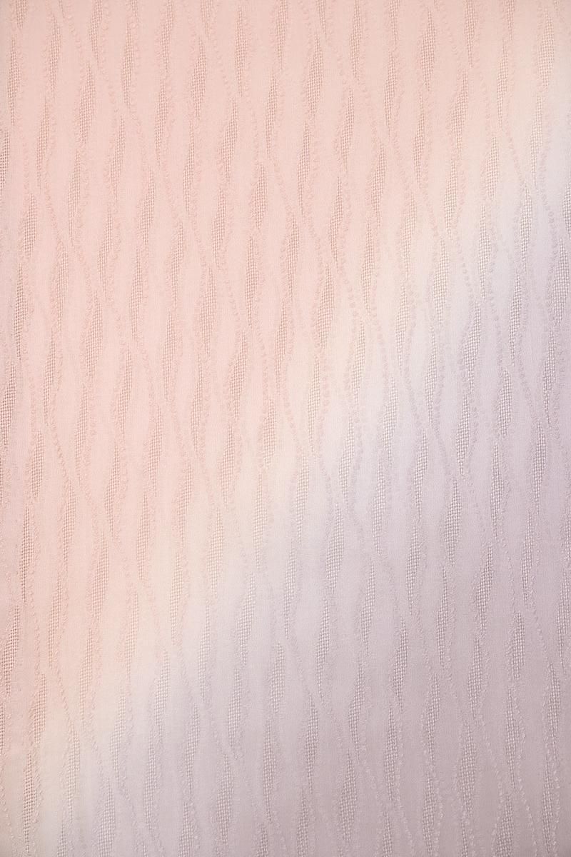 ベビーピンク色と薄藤色が近いでしょうか、淡いピンク色と薄紫色でおおらかな流線暈かしを配した薄物の付下げです。立涌のような地紋が浮かぶ柔らかな色遣いが優雅で女性らしい雰囲気のお品、シンプルな色柄ですので合わせる帯も様々にお楽しみ頂けることと思います。盛夏のお呼ばれやお茶席などに気品豊かな装いをいかがでしょうか。