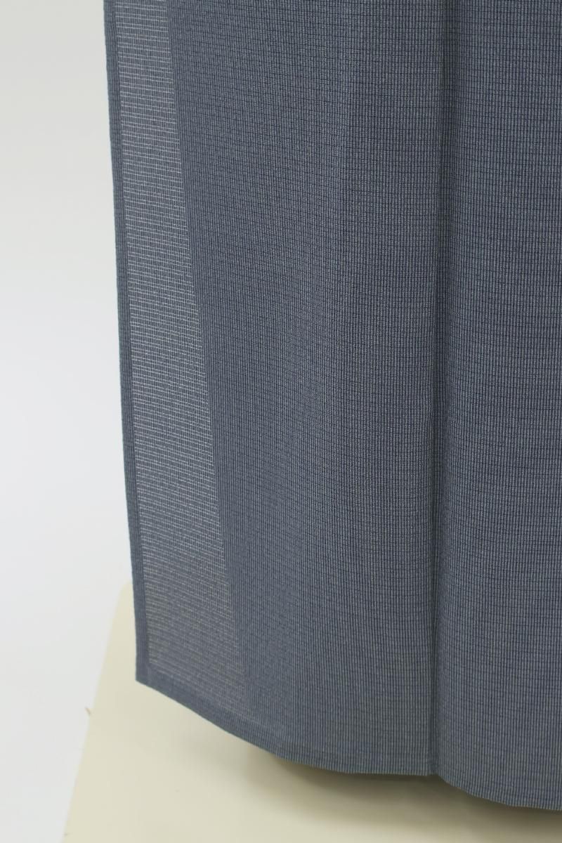 江戸小紋の名門として知られる松綱染工所の四代目として活躍された伝統工芸士・砂川健一さんの手がけた江戸小紋です。こちらは青鈍色が近いでしょうか、灰みの暗い青色の絽縮緬地に細やかな万筋が染められたお品、きりりと端正な景色に熟練の技が光りますね。季節の染め帯を合わせて気軽な街着に、また少し格高の袋帯などを合わせればお茶の席など、幅広い場面でお楽しみいただけることと思います。この機会にいかがでしょうか。