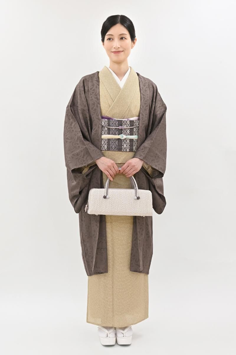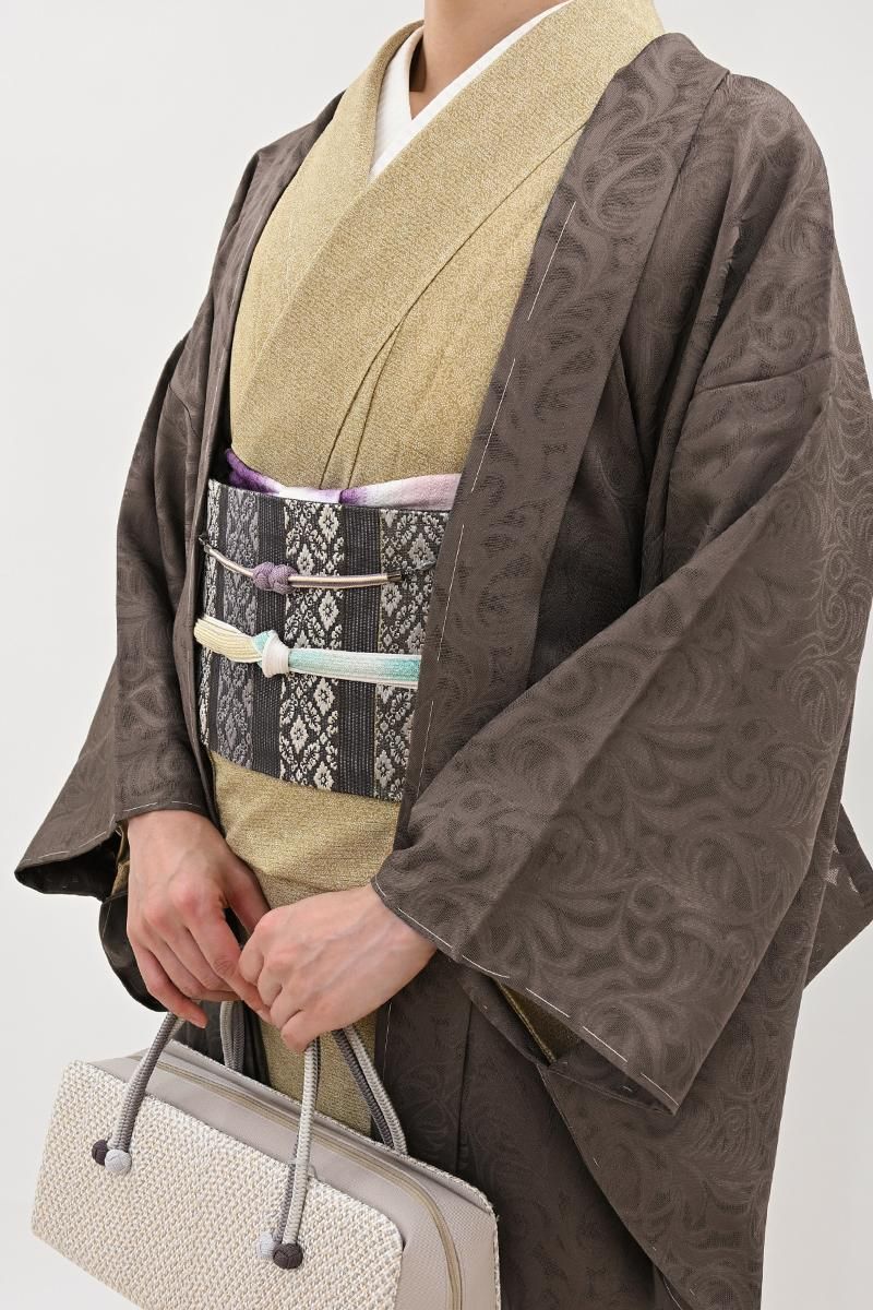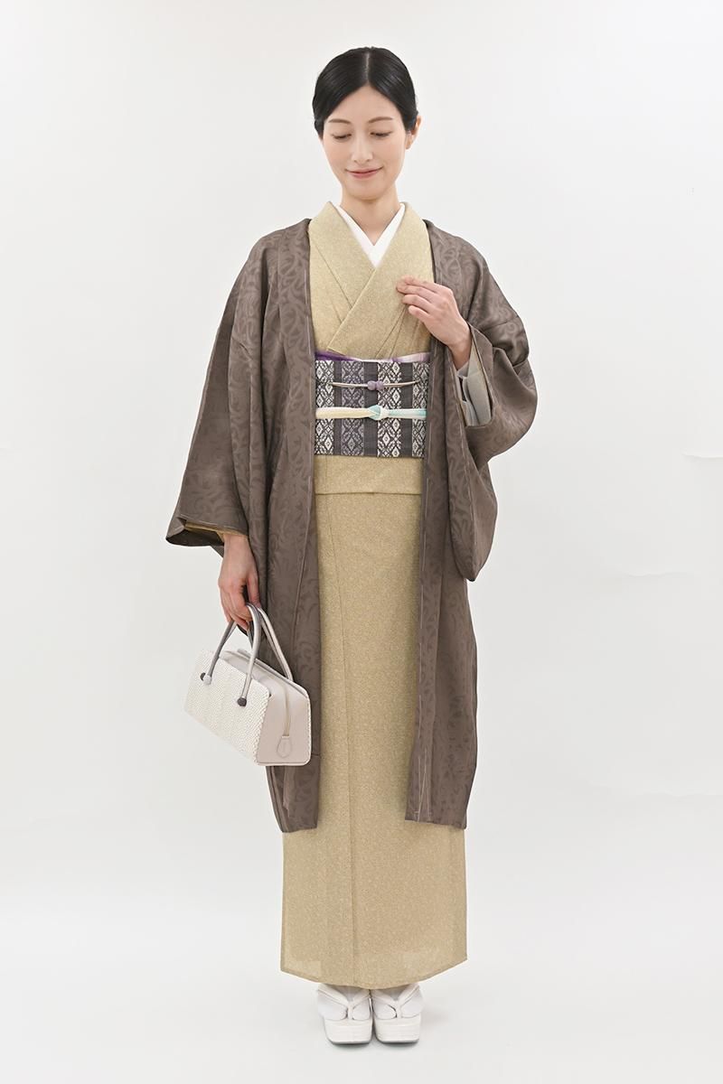 明るい薄色が多くなる夏の装いをきりりと引き締めてくれそうな一枚、落ち着いた雰囲気のシックなお色目は様々なお着物に馴染みよく、重宝にお使い頂けそうですね。思わぬ汚れから着物や帯を護る為にも、やはり外出時には何か一枚重ねて頂くと安心です。合わせる着物を選ばないシンプルな紋紗の羽織、この機会にいかがでしょうか。
