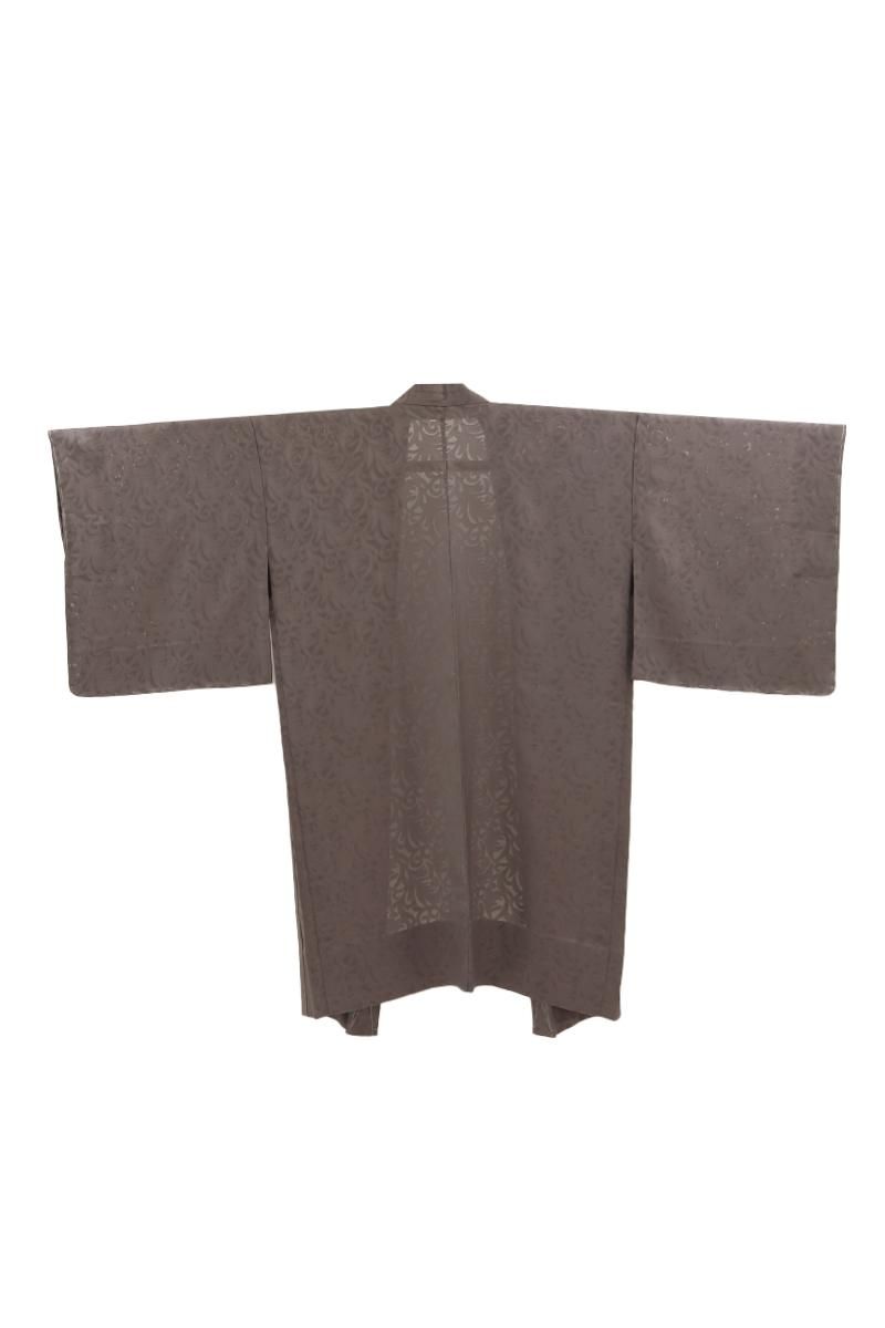 深いチャコールグレーの地に、唐草文が浮かぶ紋紗の羽織です。