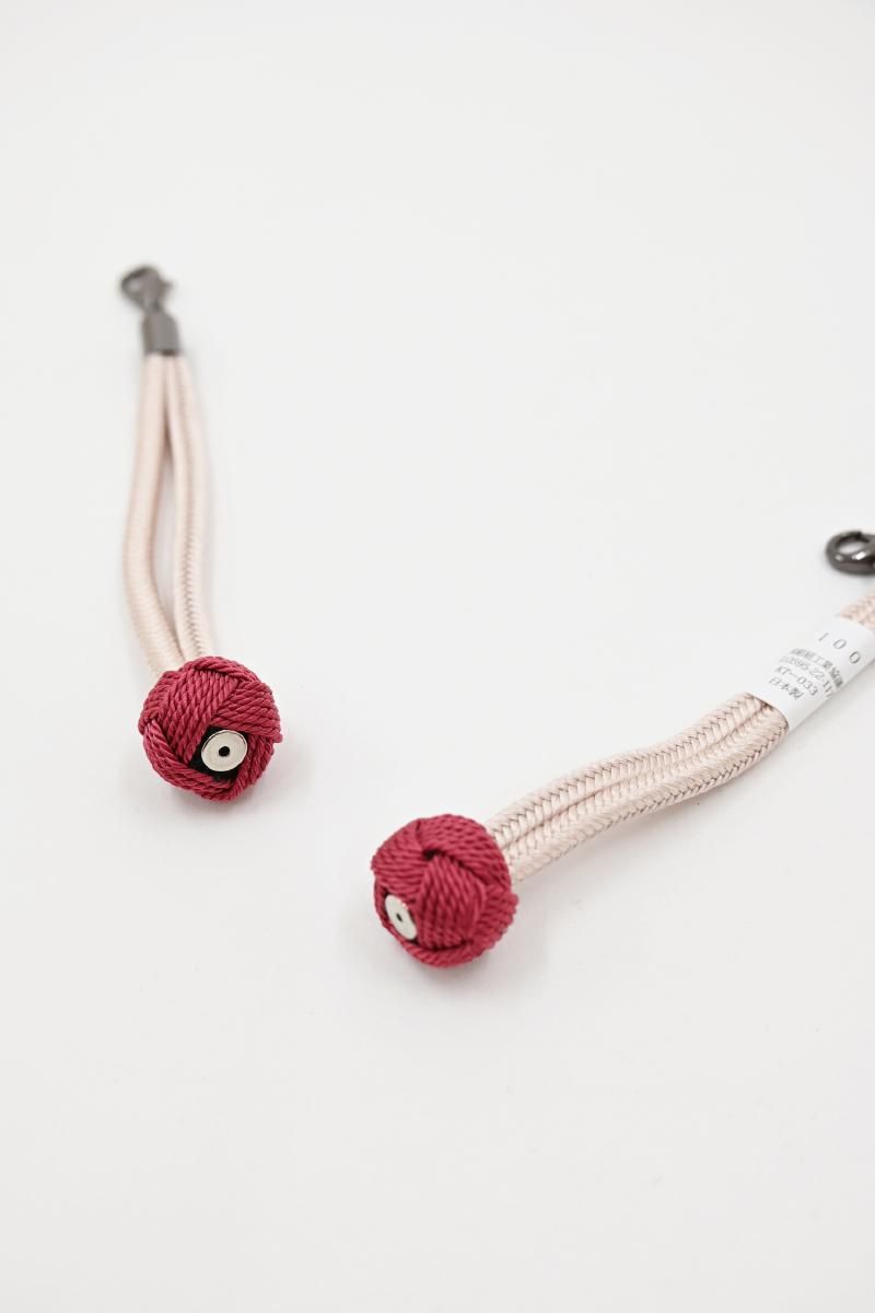 こちらは京都の翠嵐工房謹製の羽織紐です。しっかりと組まれた組紐に白色で縁取られた小田巻がころんと愛らしいアクセントとなっています。紐の先がカニカンになっていますので扱い易く、マグネット式なので簡単に取り外しが出来るのが嬉しいですね。装いをモダンに引き立ててくれる彩り美しい羽織紐、この機会にいかがでしょうか。