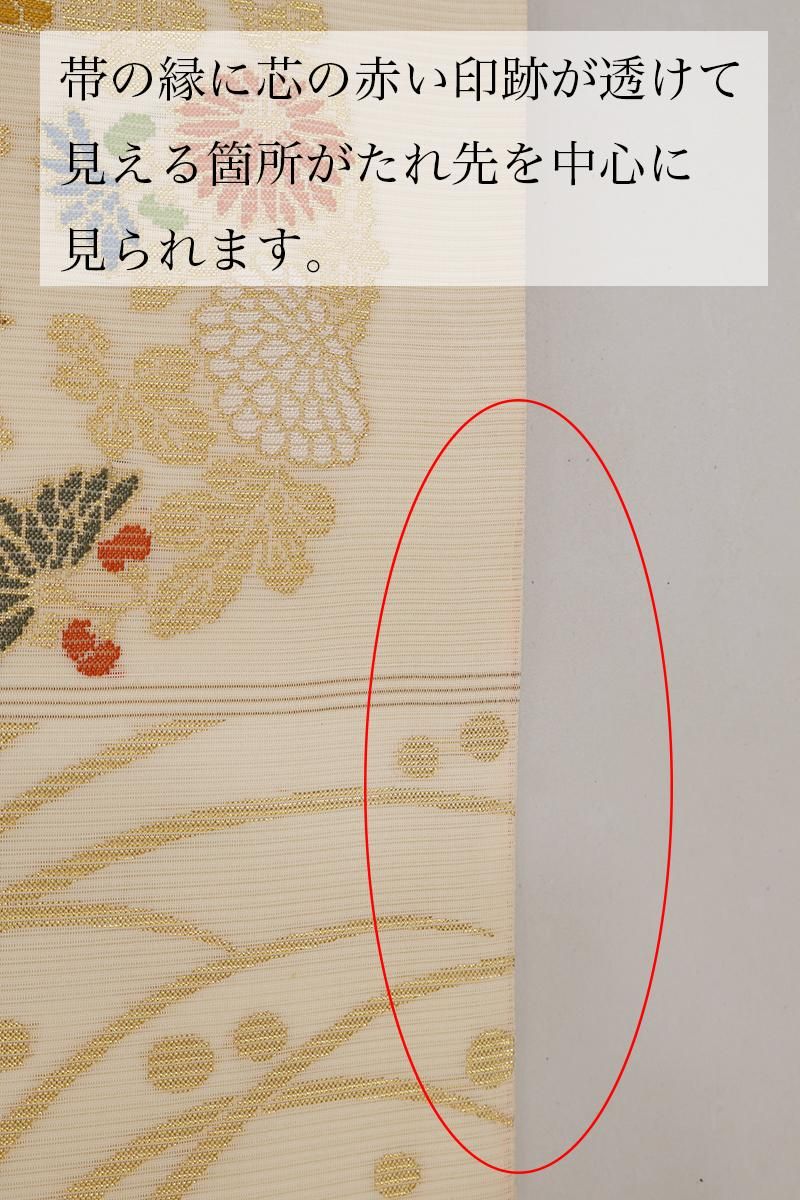 ・帯の縁に芯の赤い印跡が透けて見える箇所がたれ先を中心に見られます。(画像あり)