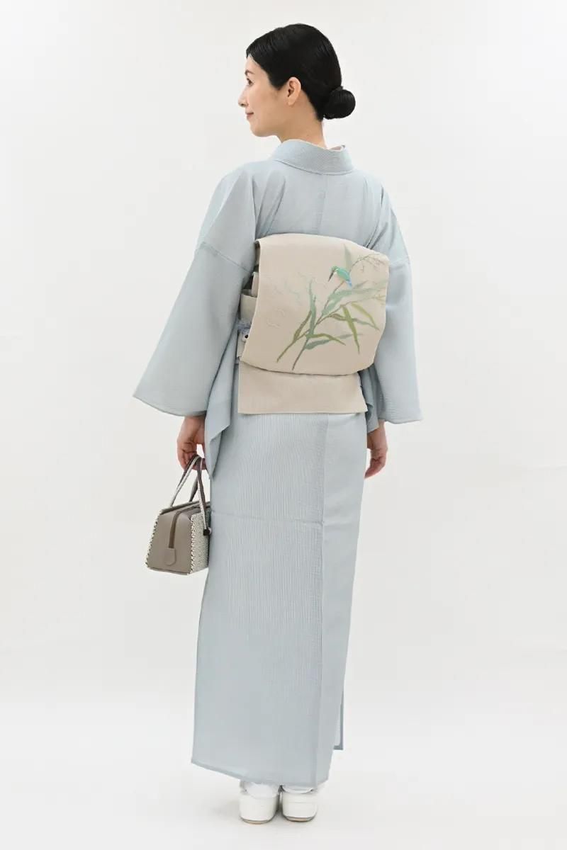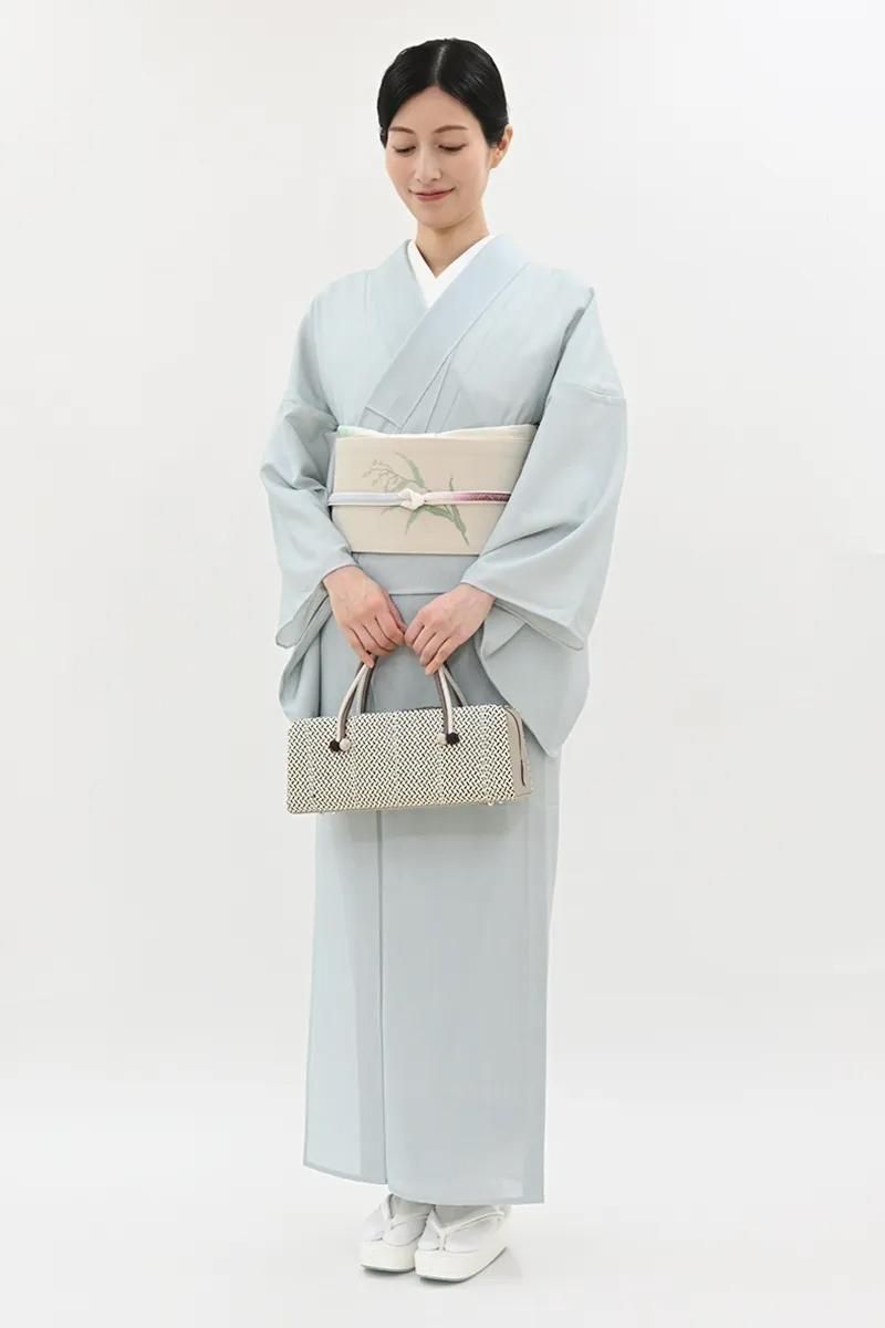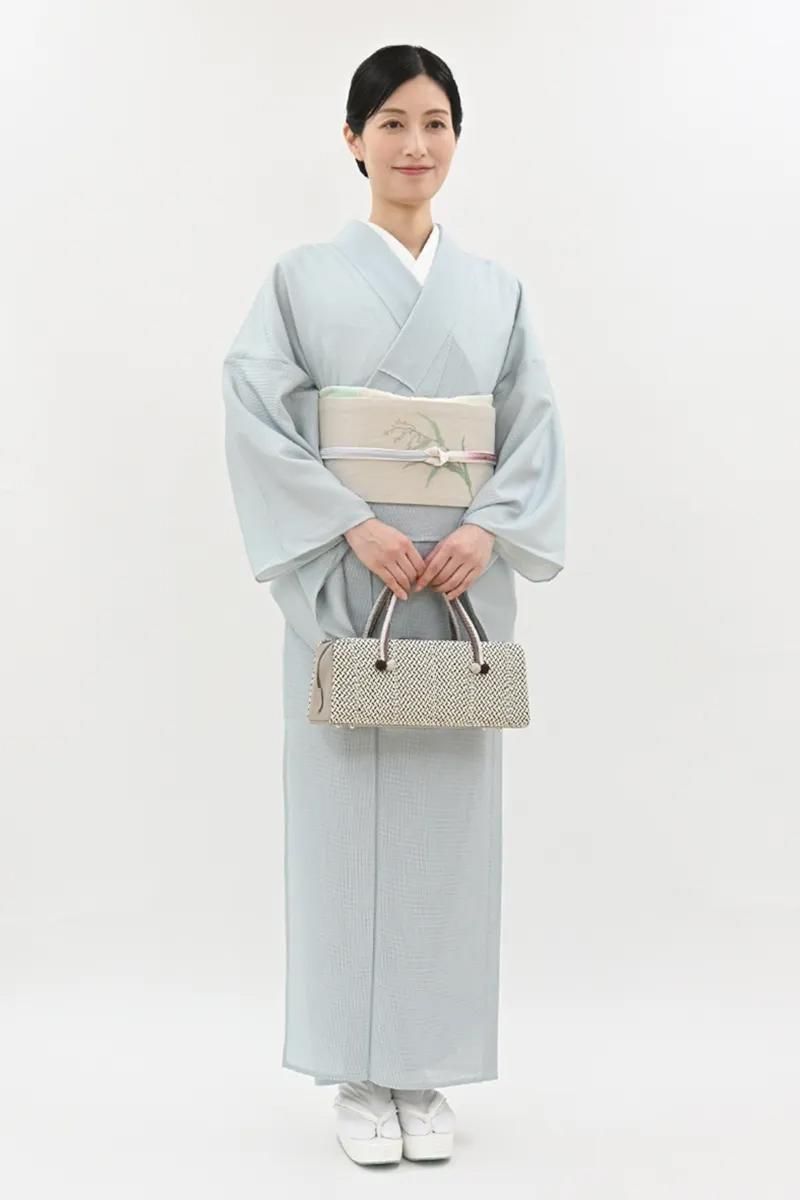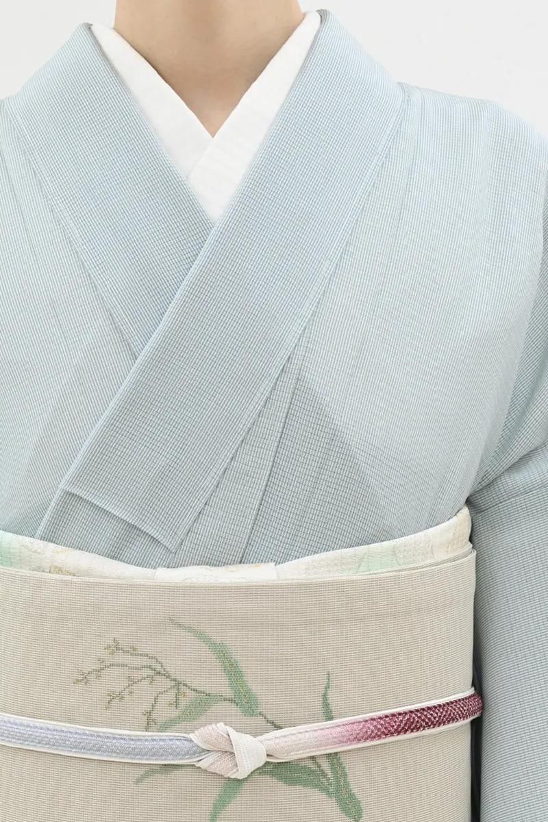 こちらは江戸小紋三役に次いで格の高い五役の万筋、合わせる帯次第で様々なお席に対応できる細やかな柄ゆきの江戸小紋は一枚ご用意いただくと何かと重宝ですね。季節の染め帯を合わせて気軽な街着として、また少し格高の袋帯などを合わせればお茶のお席などに、と幅広い場面でお楽しみいただけることと思います。すっきりと爽やかなお色目の一枚、この機会にいかがでしょうか。