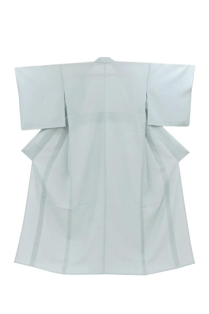 空色鼠色が近いでしょうか、灰みの水色で万筋を染めた絽の江戸小紋です。