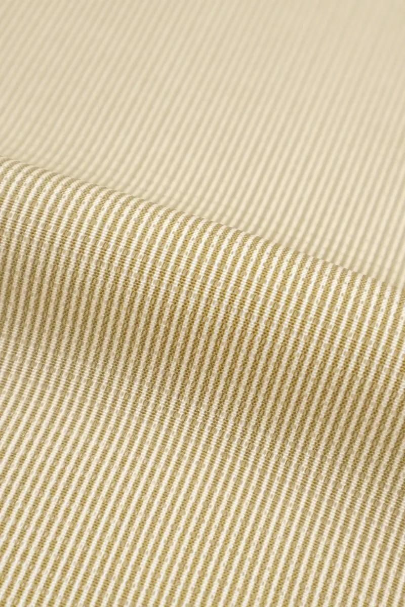 茅色が近いでしょうか。ほのかに緑みを含んだ黄褐色で万筋を染めた、絽の江戸小紋です。