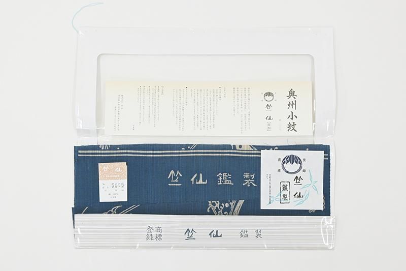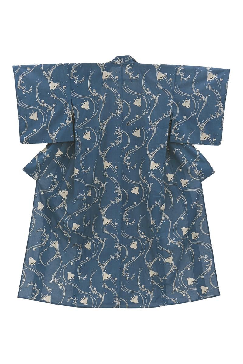 こちらは柔らかな紺色の地に、波千鳥の図を染めたお品、おおらかで微笑ましいお柄はこれぞ浴衣、と思わせる清々しさですね。竪に絣を織り出した独特の風合いと程よい張りのある上質な奥州木綿地に小紋感覚の染めですので浴衣としてはもちろん、半衿を付けて木綿着物としての装いもお楽しみいただける事と思います。今夏のお出かけにいかがでしょうか。