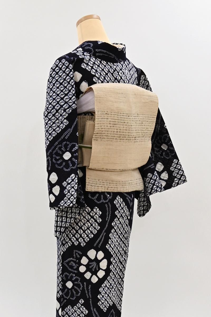 こちらはざっくりと野趣ある地風が素朴な印象のお品、シンプルな無地感覚の帯は幅広い色柄の着物に合わせやすく重宝にお使い頂けることと思います。夏紬や上布、木綿などのカジュアルな装い大人の洒落みを添える一本をいかがでしょうか。