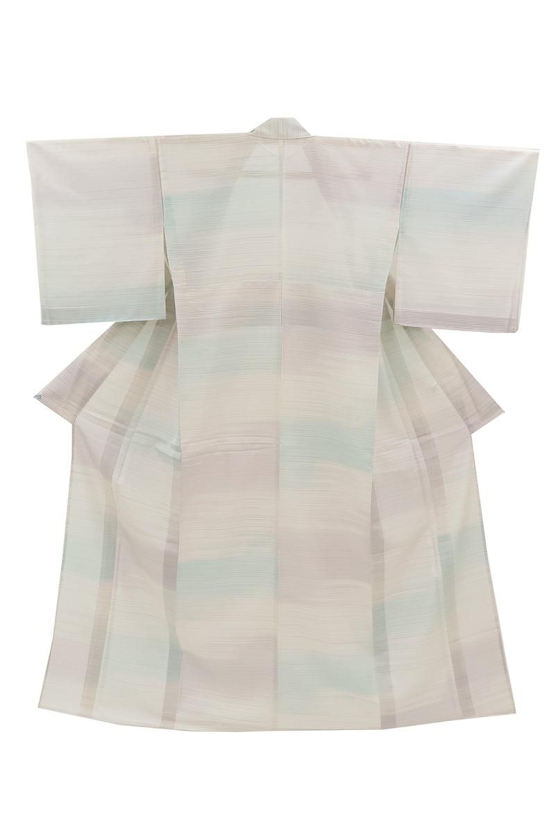 こちらは極薄手でさらさらと肌から滑るような布味が爽やかな着心地のお品、シンプルな色柄ゆきは着る人や年齢を選ばず、またモダンにも古典的にも、帯合わせ次第で様々な表情をお楽しみ頂けそうですね。盛夏にも爽やかな風を通す上質な夏衣、ぜひこの機会にお手に取ってご覧くださいませ。