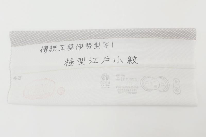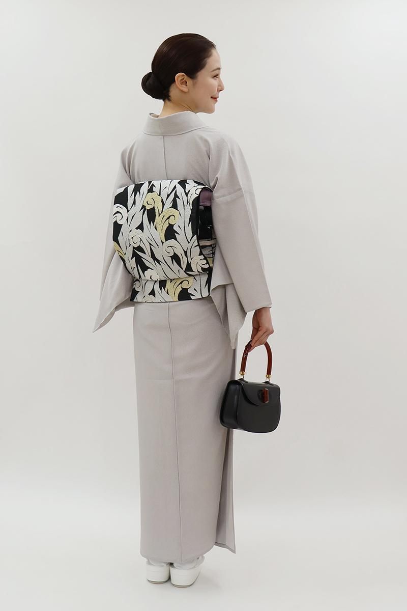 格の高い小紋三役のひとつとしても人気の行儀は、染め帯から格高の袋帯まで幅広い帯合わせで重宝にお召しいただけますね。やさしいお色目が都会的で落ち着いた雰囲気のお品、この機会にいかがでしょうか。