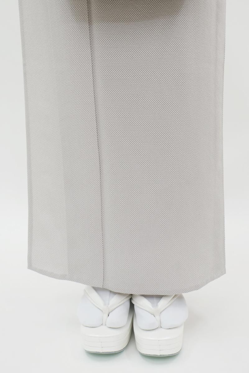 桜鼠色が近いでしょうか、温かみのある薄グレー系の地に行儀を染めた単衣の江戸小紋です。