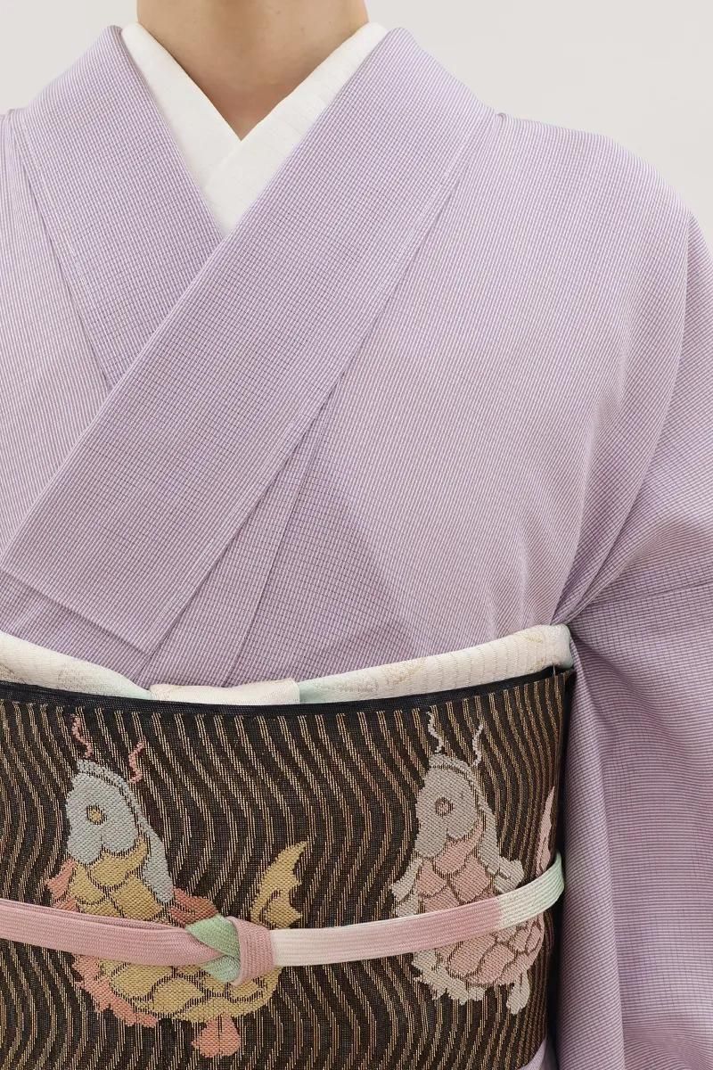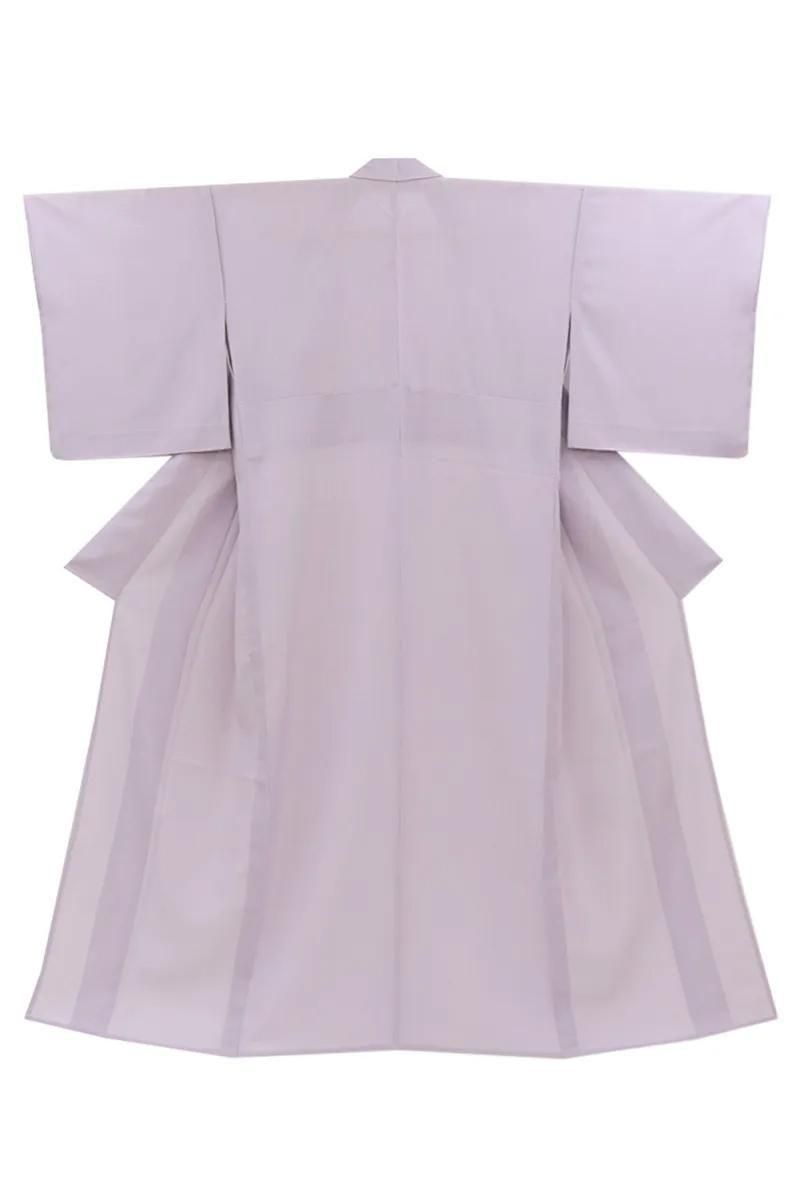 色を薄めた浅紫色が近いでしょうか、淡い薄紫色の地に、万筋を配した絽の江戸小紋です。